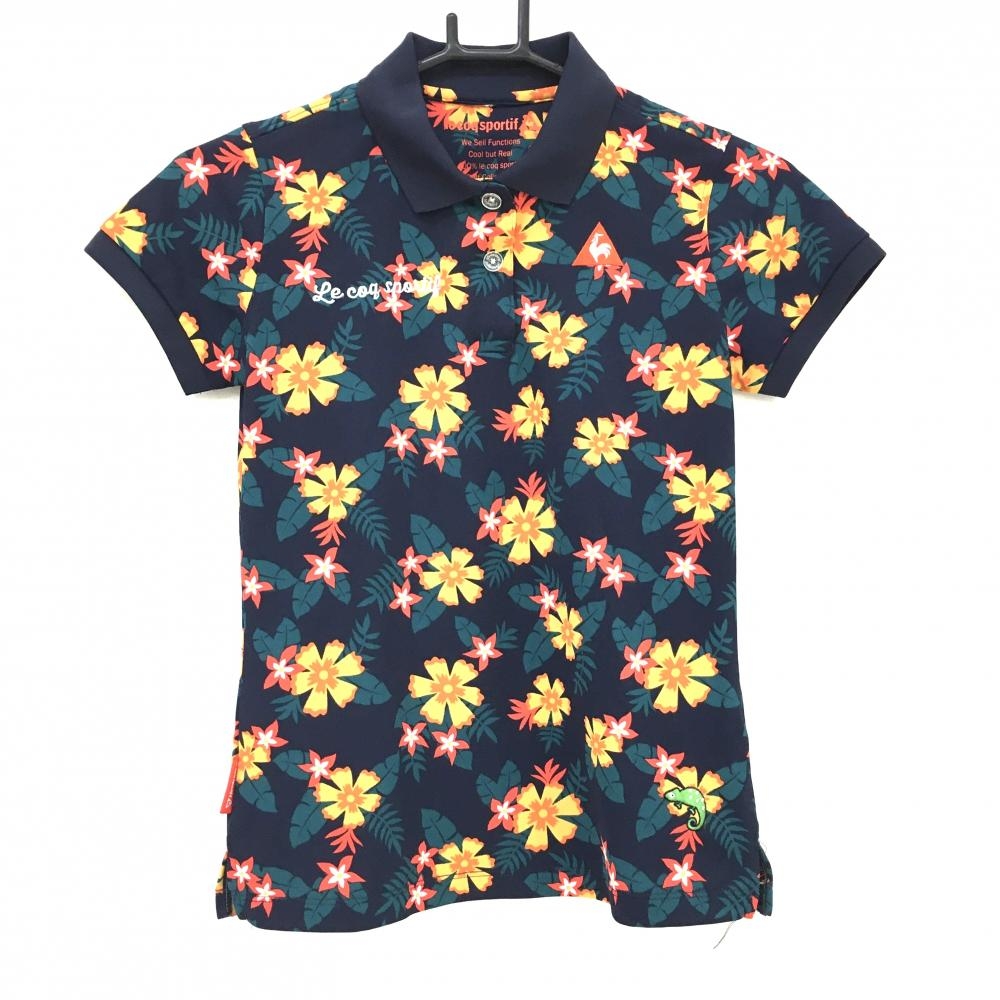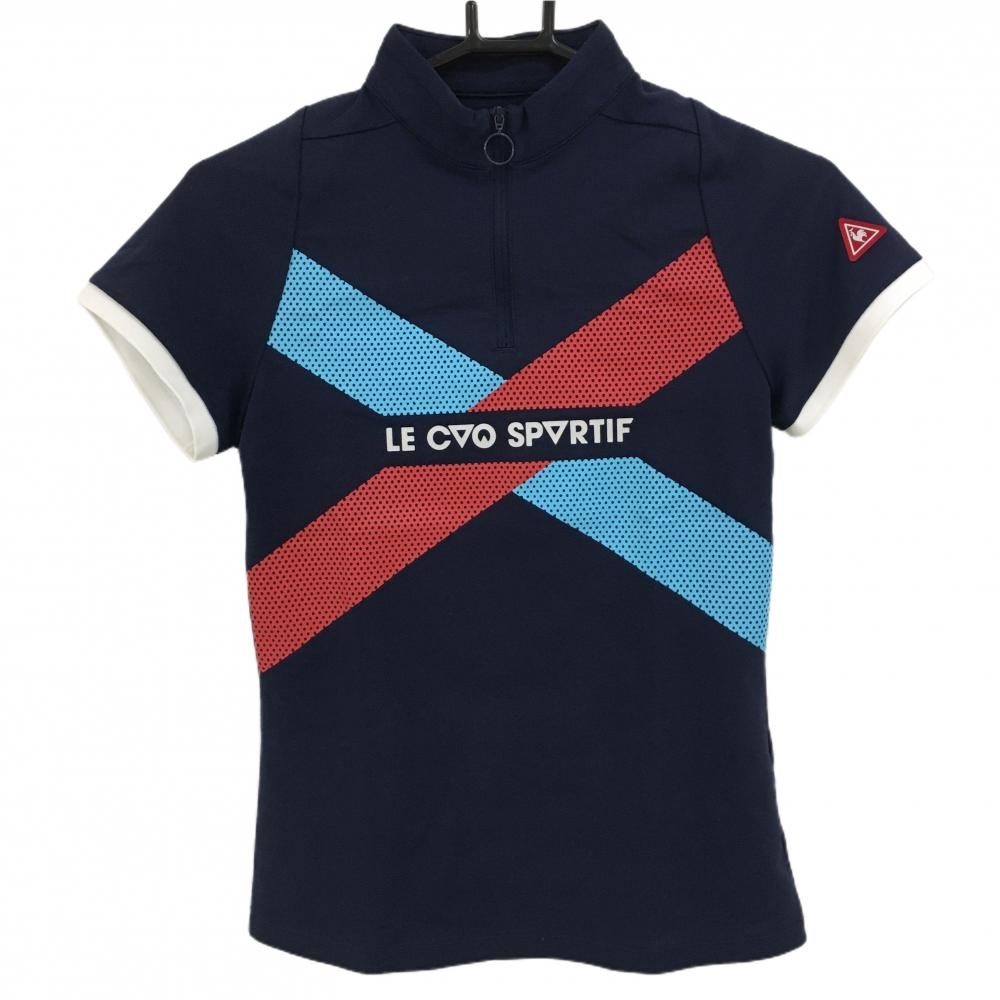 ルコックゴルフ 長袖ハイネックシャツ ネイビー×白 微起毛 ロゴ刺しゅう レディース M ゴルフウェア le coq sportif