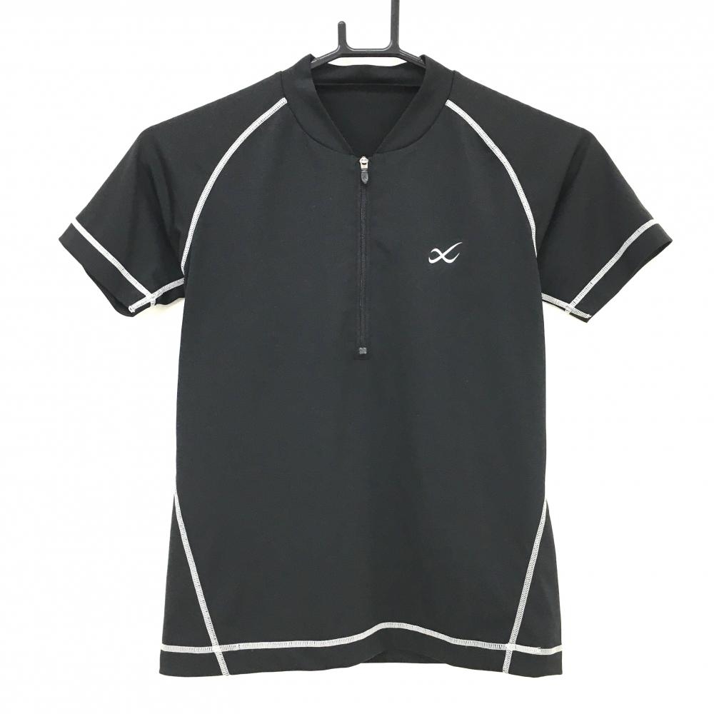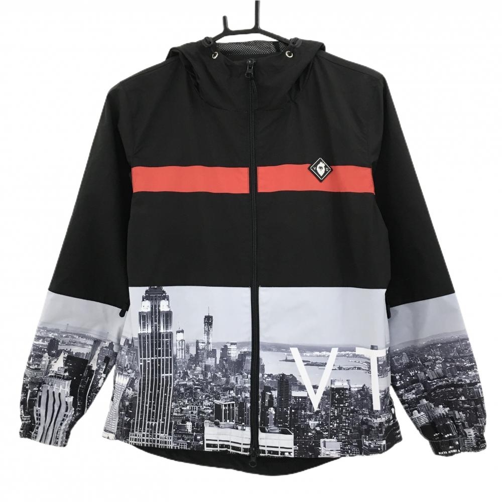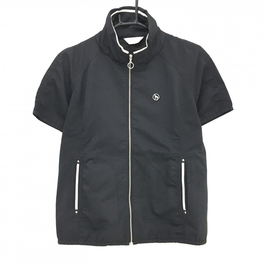 【超美品】アンサネス ジャケット 黒 裾ゴム 襟ロゴ レディース M ゴルフウェア ANSUNESS