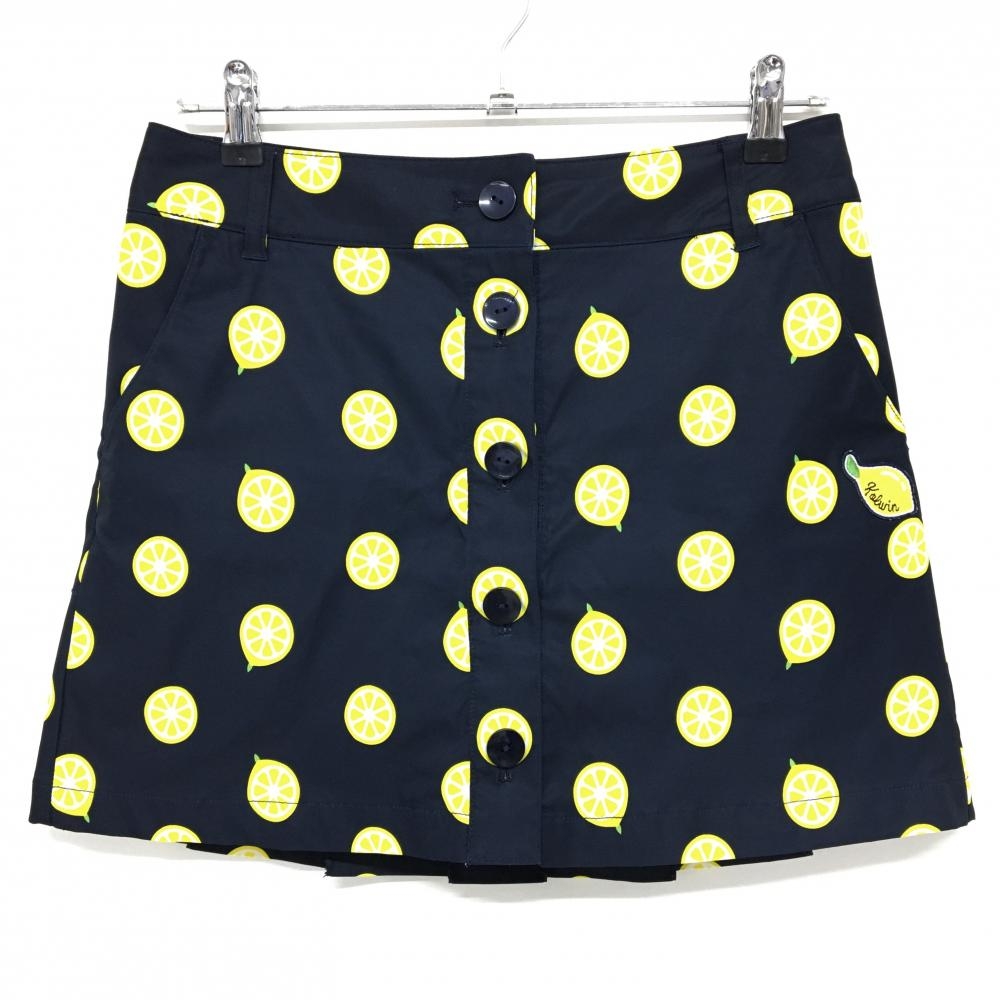 パーリーゲイツ スカート ネイビー×イエロー パイナップル柄 レディース 0(S) ゴルフウェア PEARLY GATES