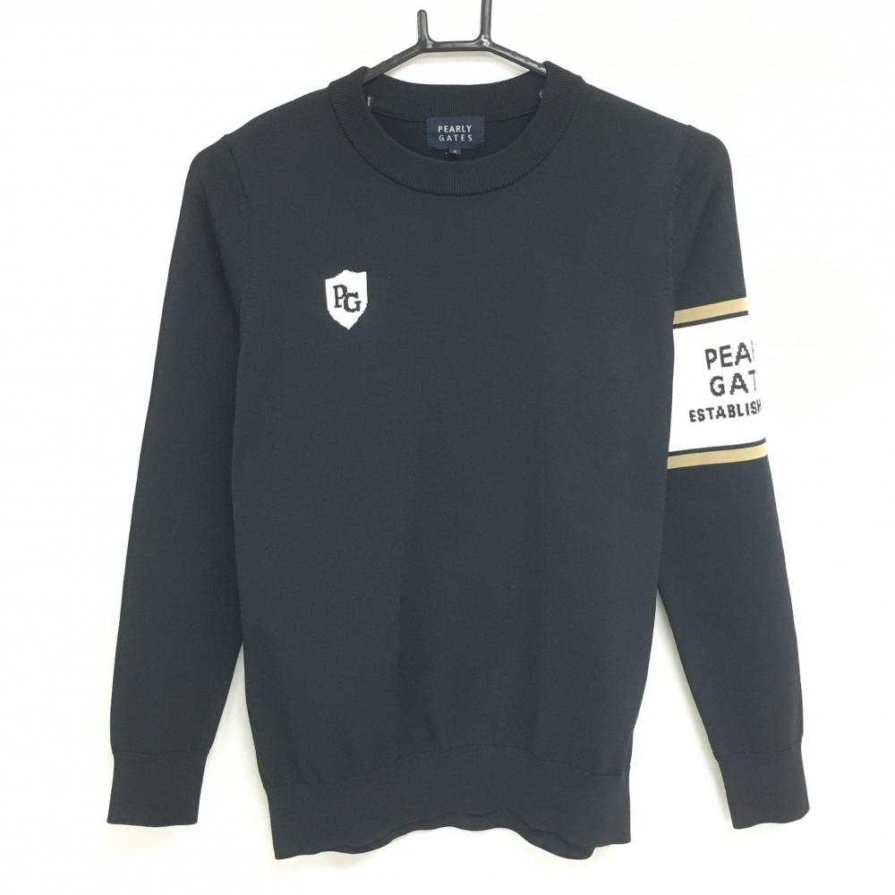 【美品】パーリーゲイツ セーター 黒×パープル 後ろロゴ ウール混 ニット レディース 0(S) ゴルフウェア PEARLY GATES