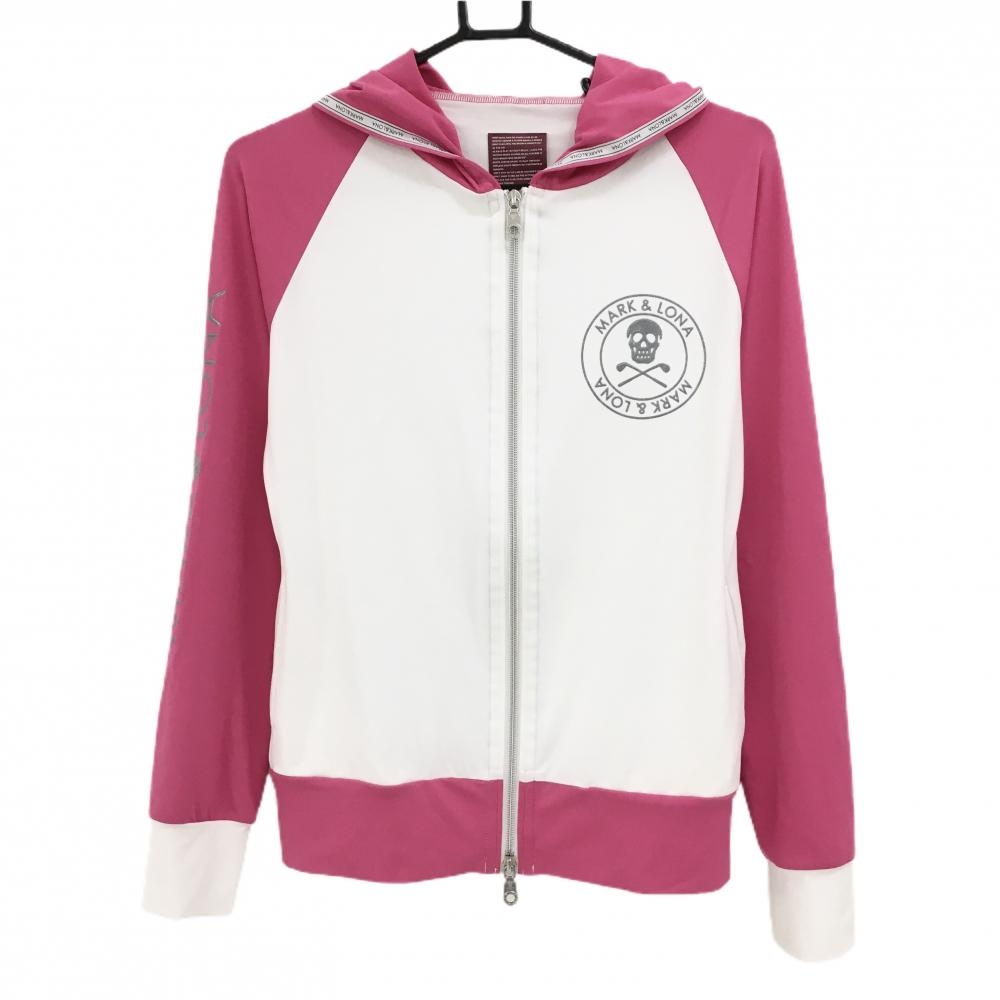 【美品】マスターバニー ジップパーカー 白×黒 胸ロゴ ダブルジップ レディース 1(M) ゴルフウェア MASTER BUNNY EDITION
