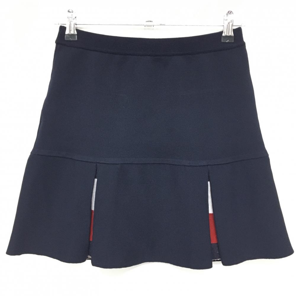 【美品】パーリーゲイツ スカート ダークネイビー×白 ウエストゴム 裾フレア ストレッチ レディース 0(S) ゴルフウェア PEARLY GATES