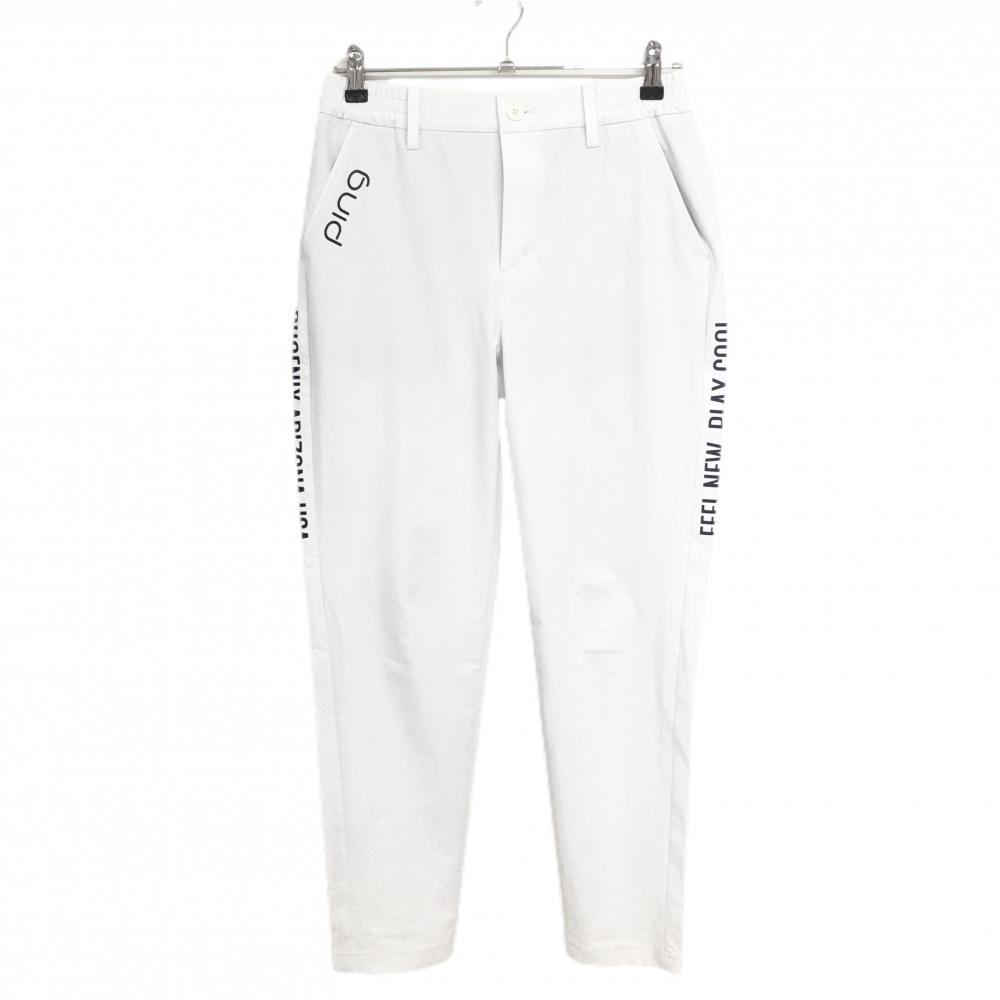 アディダス パンツ 白×ネイビー 千鳥柄 ロゴ刺しゅう レディース L/G ゴルフウェア adidas