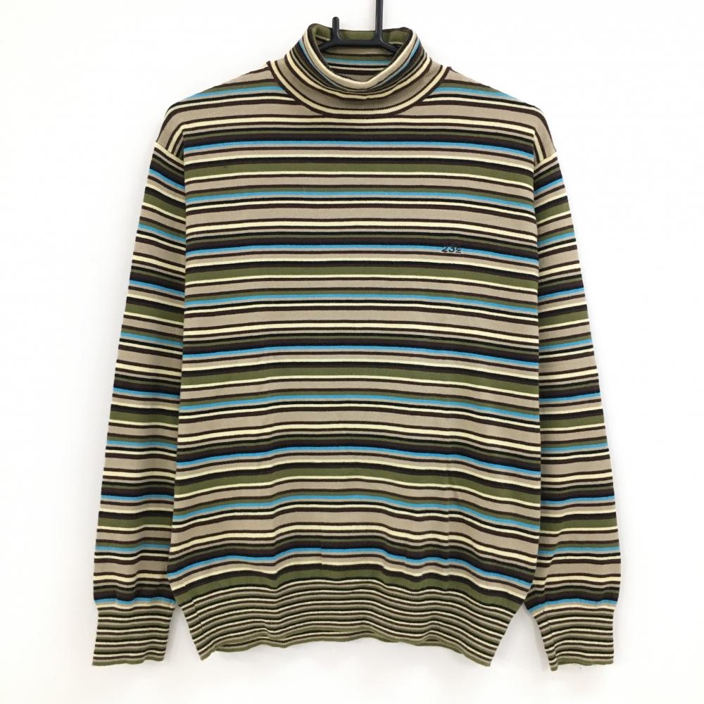 【超美品】MUスポーツ ハイネックセーター ボルドー系×ピンク×ブラウン系 ボーダー レディース 40(M) ゴルフウェア M・U SPORTS