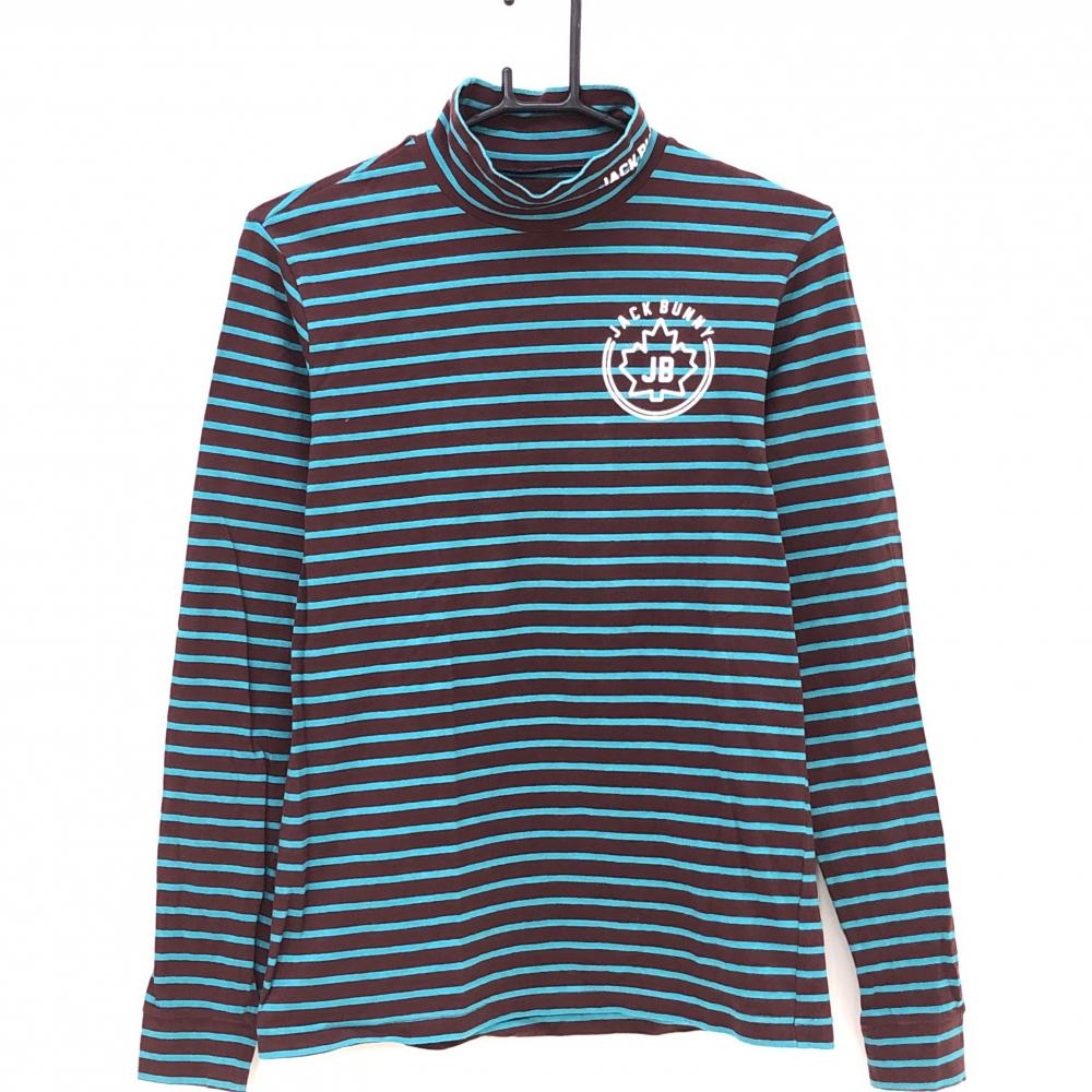 【超美品】ジャックバニー ブルゾン ブラウン×グリーン ロゴ総柄 ハーフジップ 裏起毛 メンズ 4(M) ゴルフウェア Jack Bunny