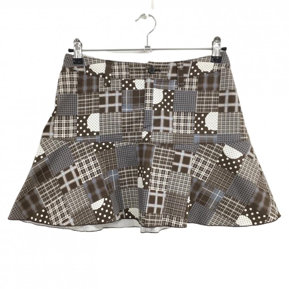【超美品】MUスポーツ ストレッチスカート ダークブラウン×白 チェック風 裏起毛 レディース 40(M) ゴルフウェア M・U SPORTS