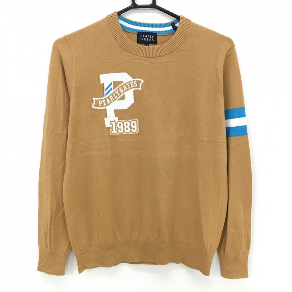 【超美品】パーリーゲイツ ハイネックセーター ライトブラウン×黒 ネックレオパード ニット レディース 1(M) ゴルフウェア PEARLY GATES