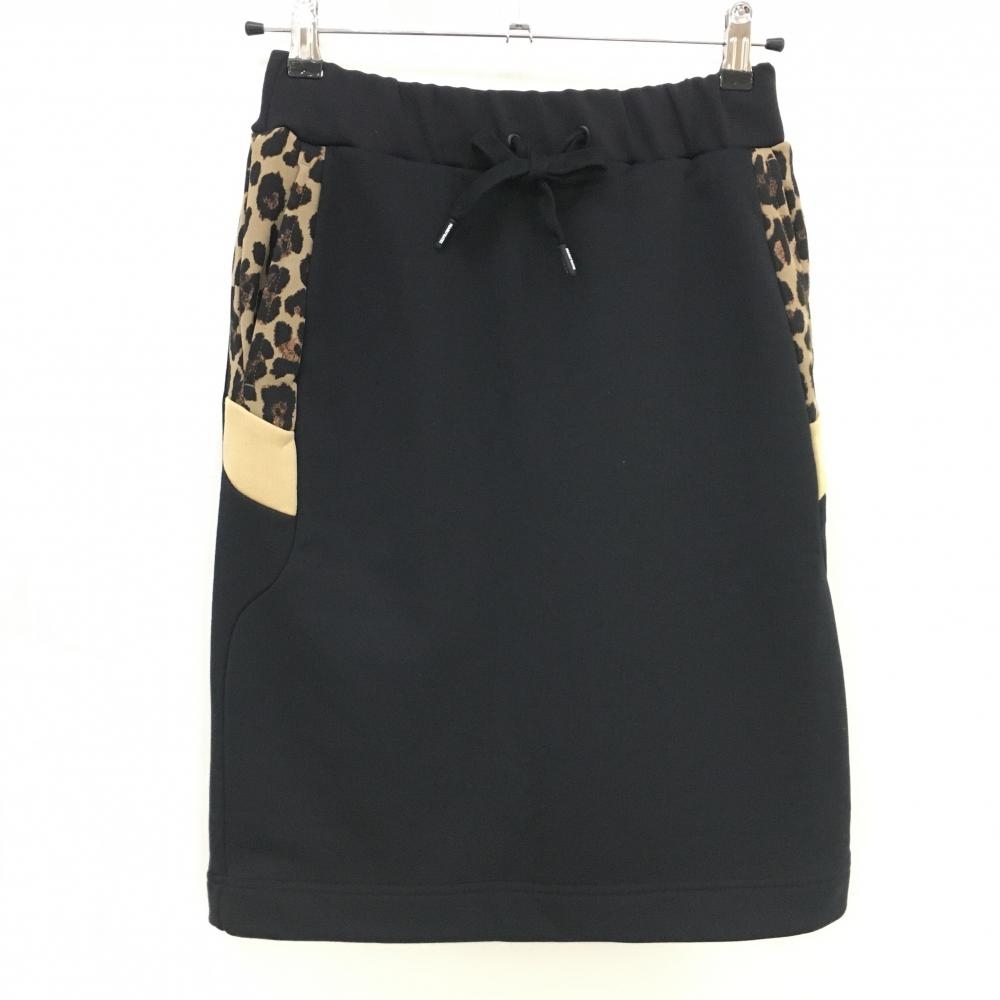 アルチビオ スカート 黒×イエローブラウン ロゴ総柄 サイドライン レディース 38(M) ゴルフウェア archivio