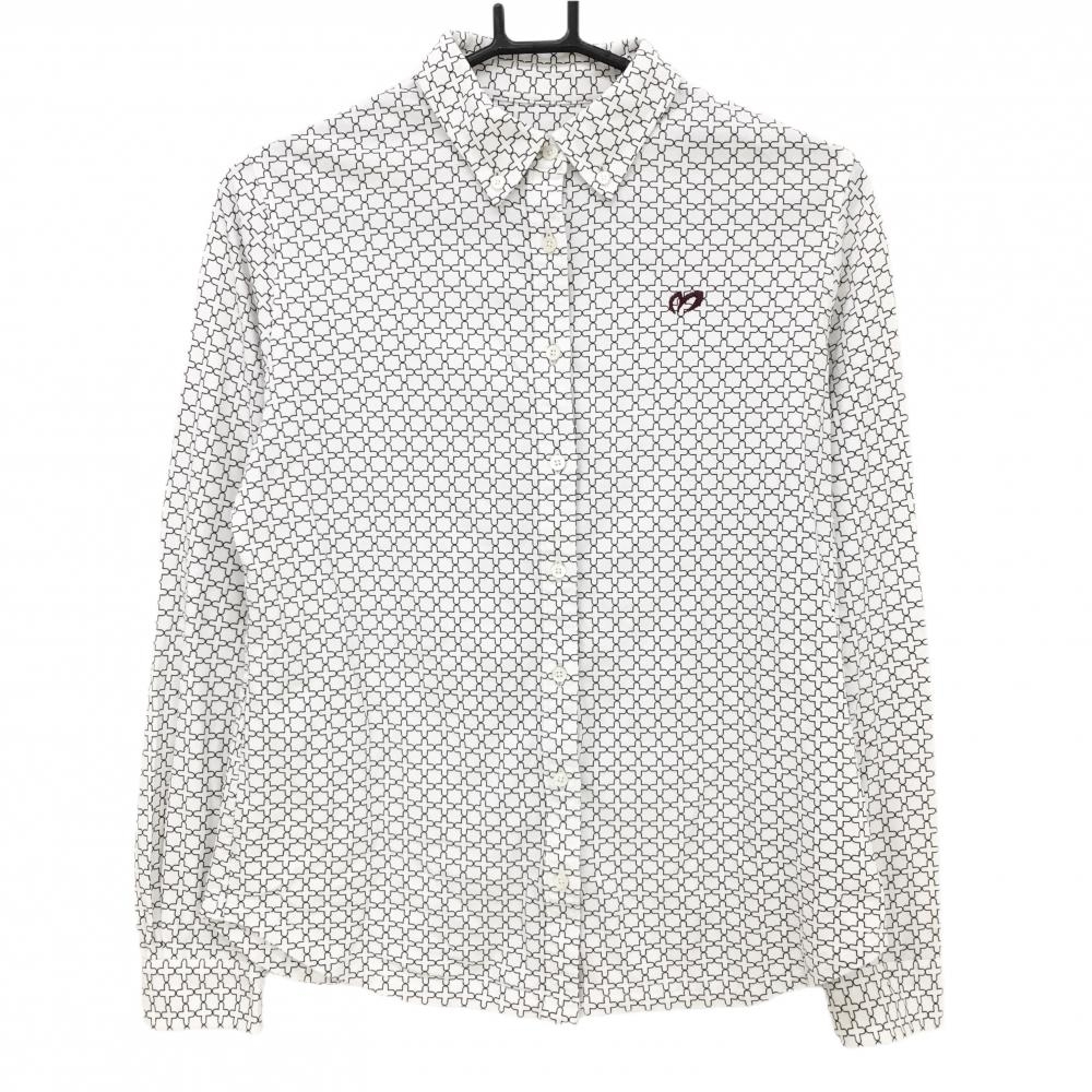 【美品】シェルボ 長袖ポロシャツ アイボリー×ブラウン 襟裏・袖口アニマル柄起毛 裏微起毛 レディース XS ゴルフウェア CHERVO