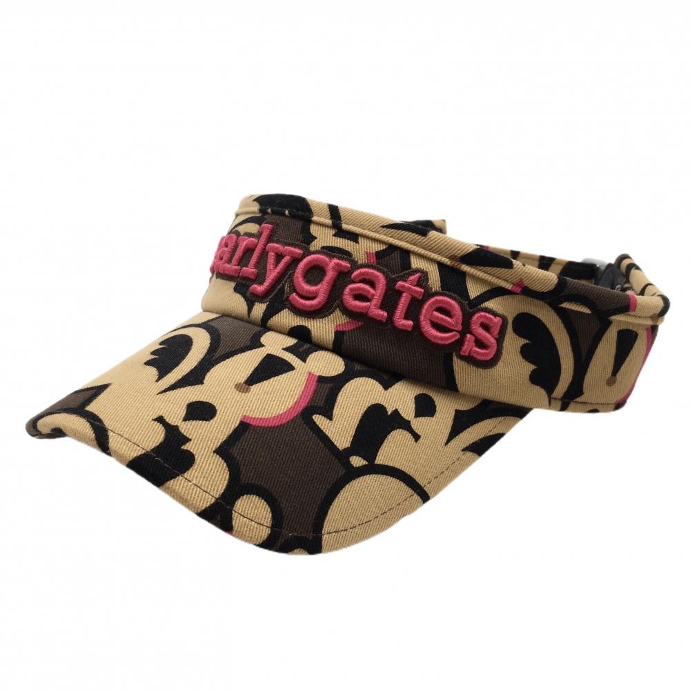 【美品】パーリーゲイツ サンバイザー ブラウン×ピンク ボア ニコちゃん スマイル S ゴルフウェア PEARLY GATES