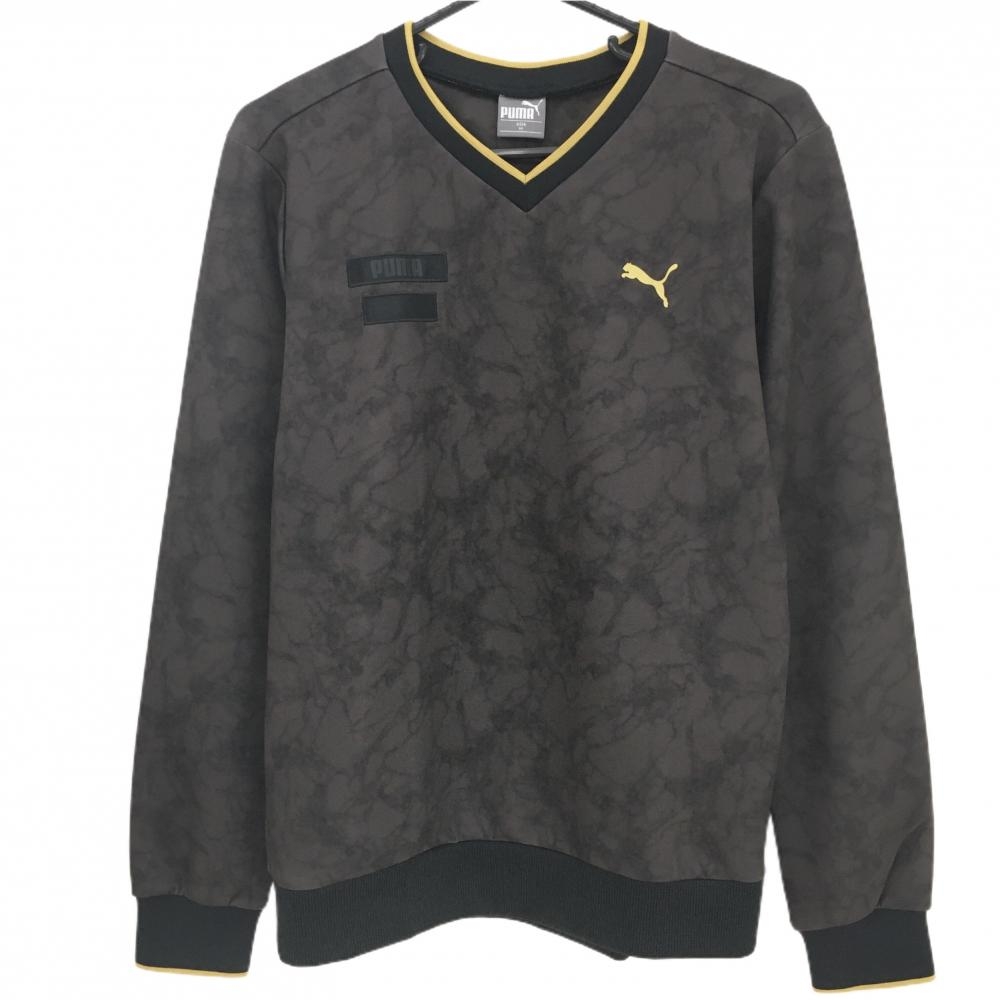 【美品】プーマ 切替ニットジャケット ブラウン×黒 前身頃タイダイ柄 メンズ M ゴルフウェア PUMA