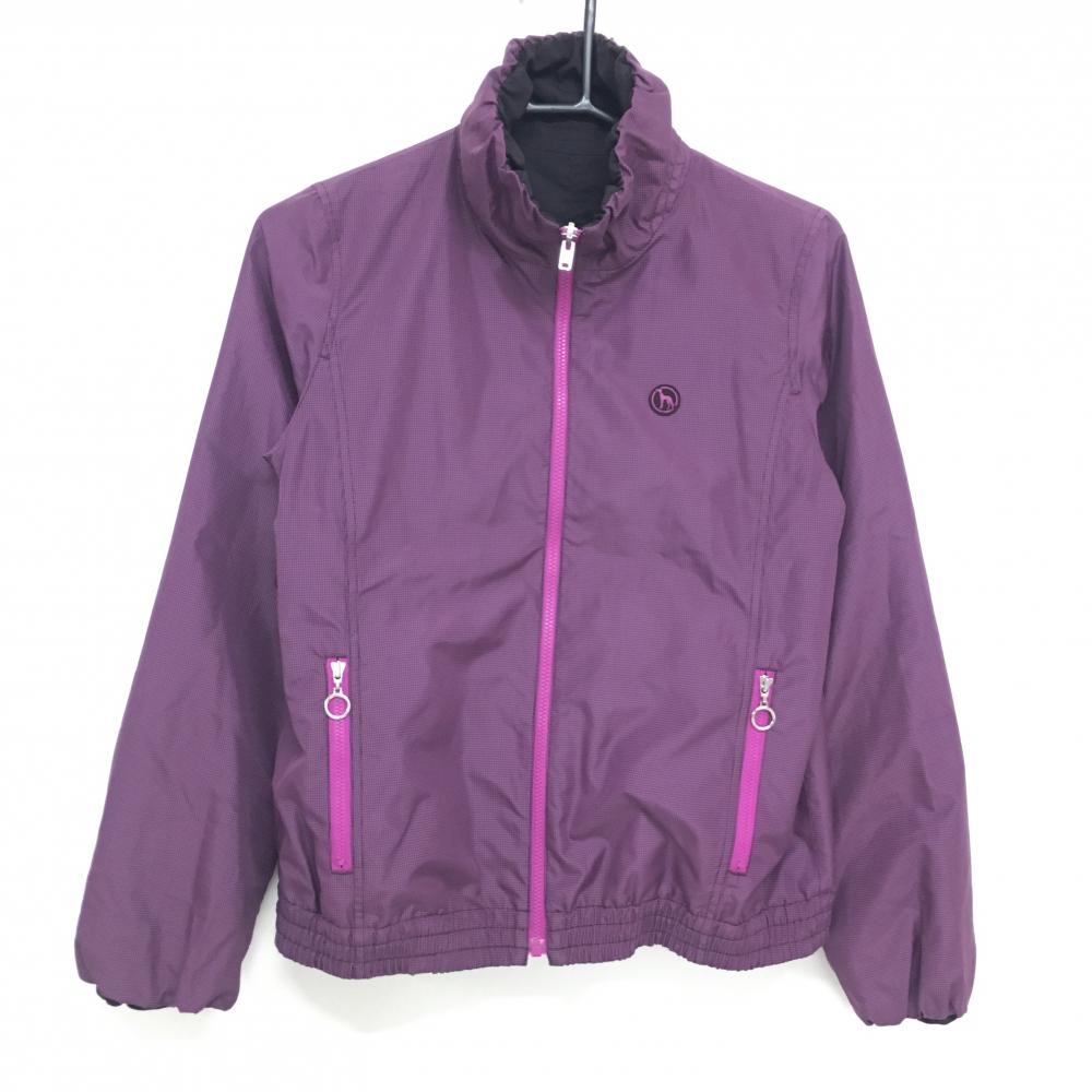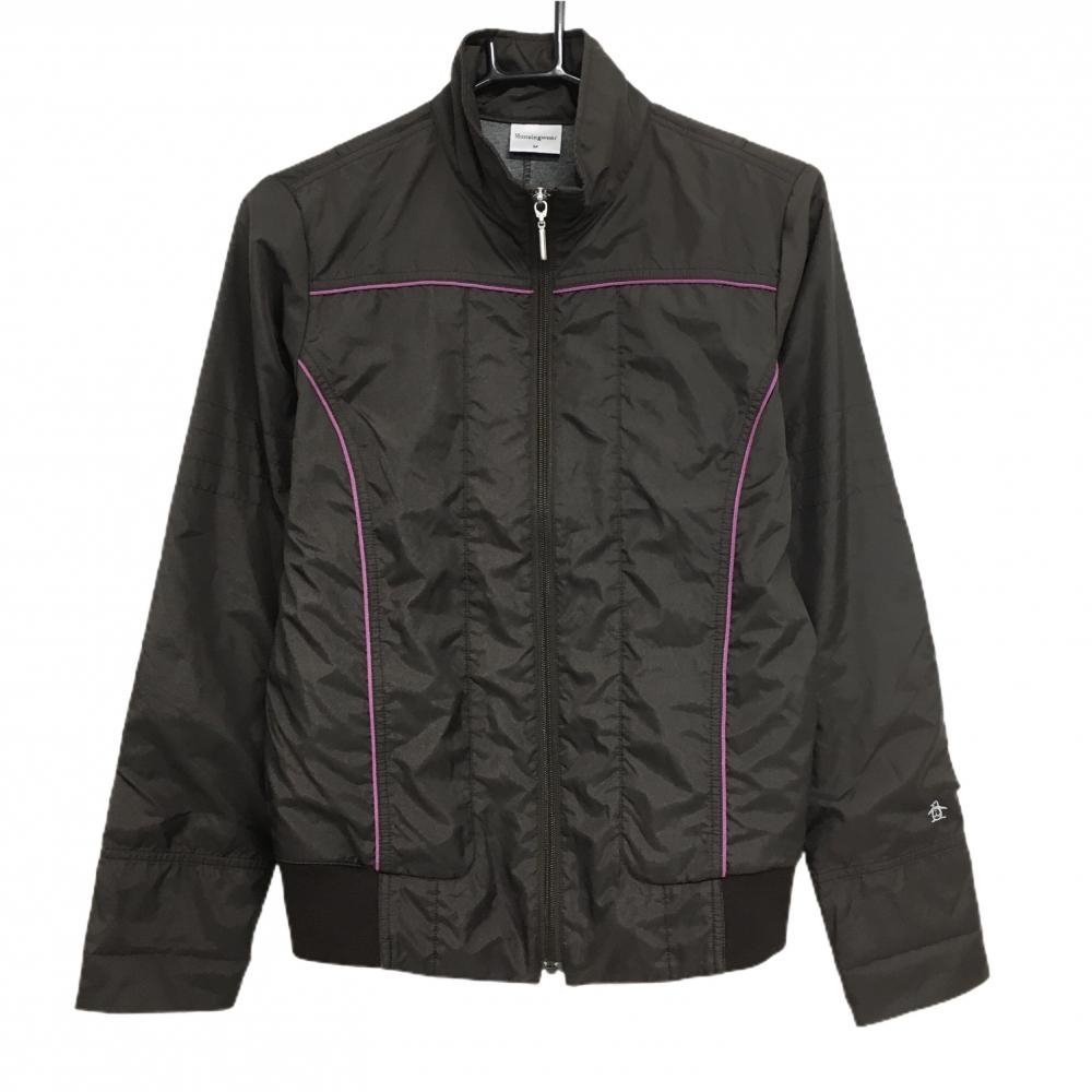 【美品】マンシングウェア 切替ボアジャケット ブラウン ダブルジップ 胸ロゴ レディース L ゴルフウェア Munsingwear