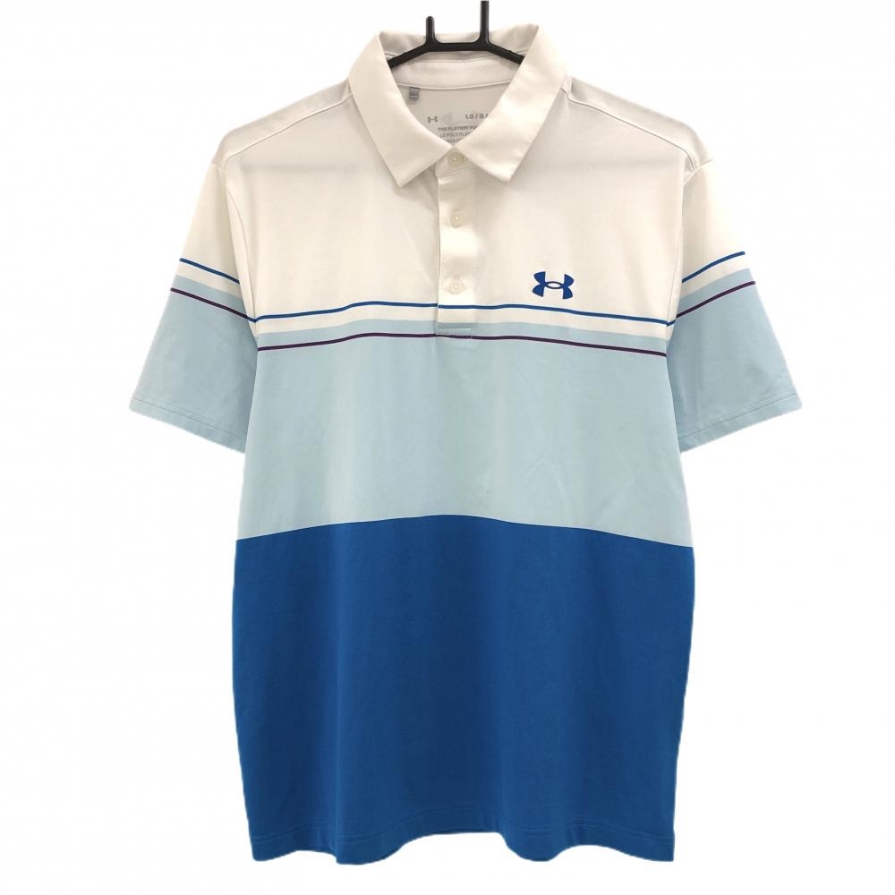【新品】アンダーアーマー 長袖ハイネックシャツ ライトブルー×グレー 背面パンチング HEATGEAR メンズ LG ゴルフウェア UNDER ARMOUR