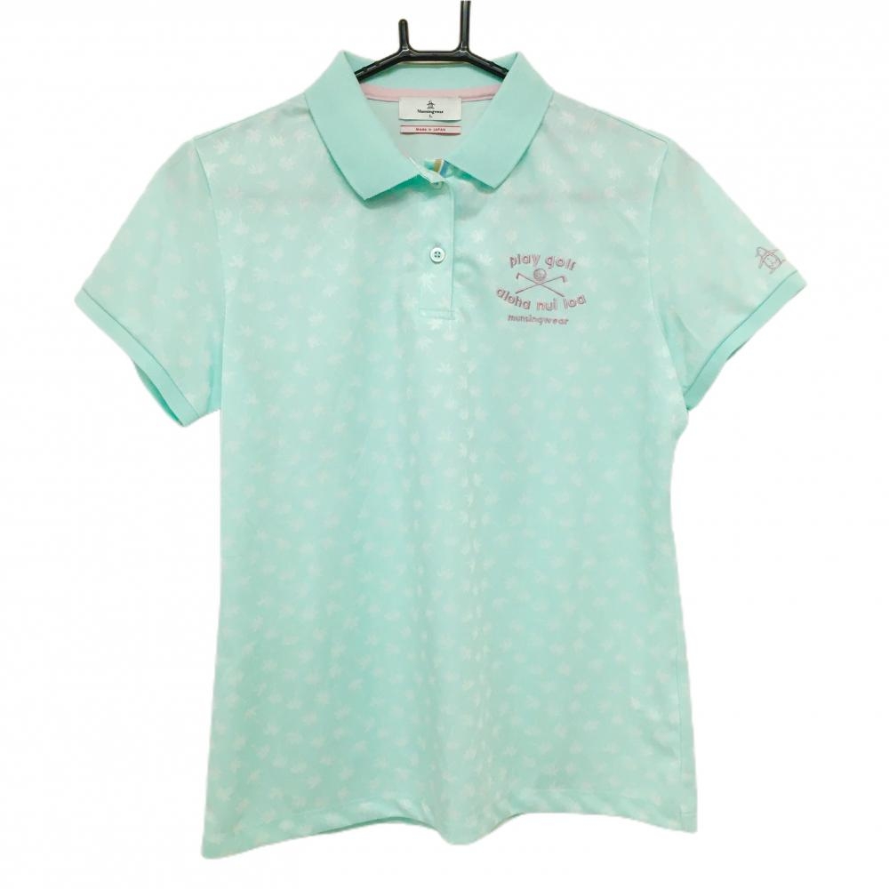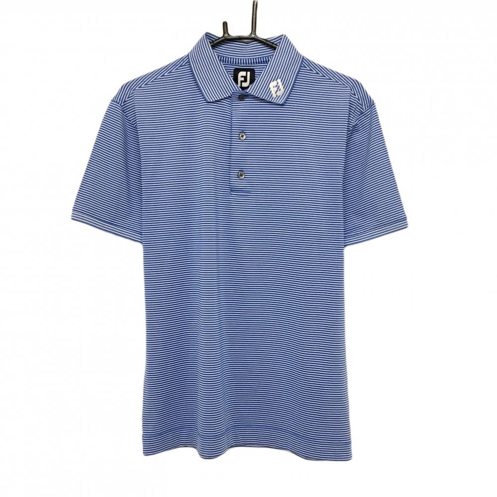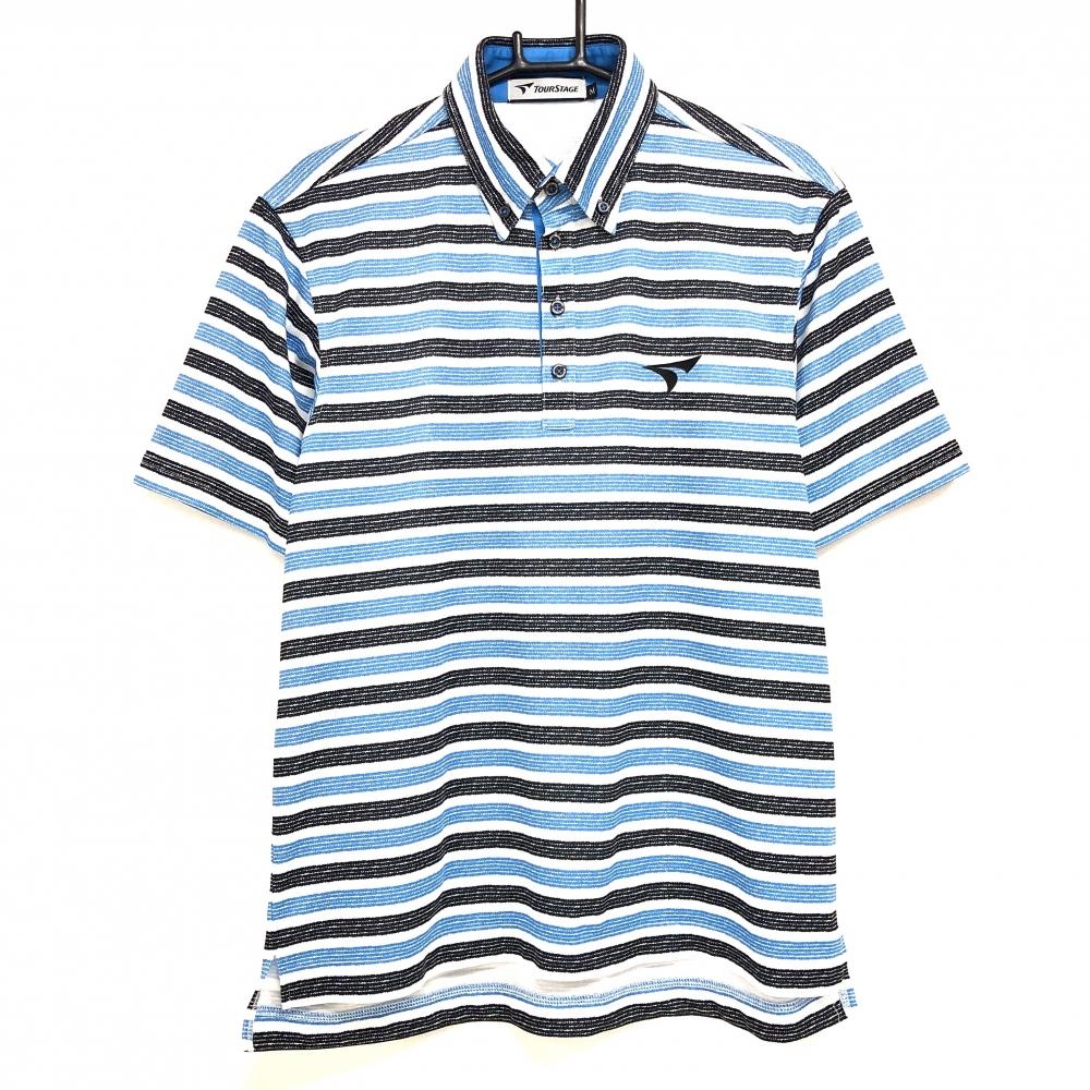 【超美品】マンシングウェア 長袖ポロシャツ ライトブルー×白 ボーダー ロゴ刺しゅう メンズ L ゴルフウェア Munsingwear