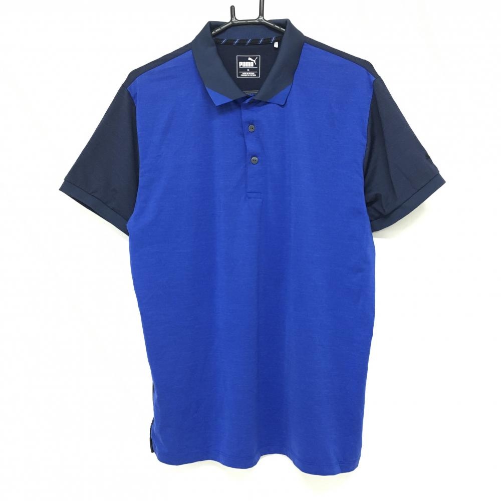 プーマ セーター ブルー×黒 グレンチェック調 ニット ウール混 メンズ L ゴルフウェア PUMA