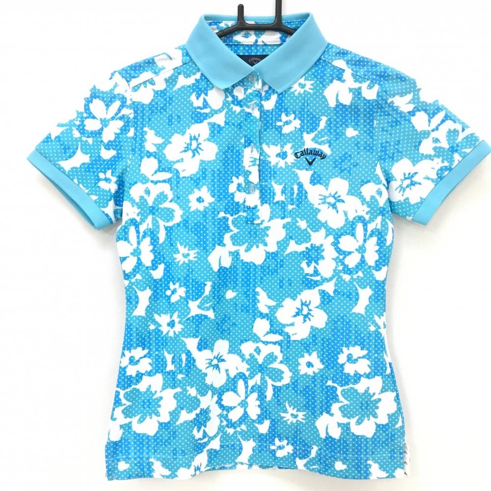 【美品】キャロウェイ サンバイザー ブルー×イエロー 花柄 ロゴ刺しゅう FR ゴルフウェア Callaway