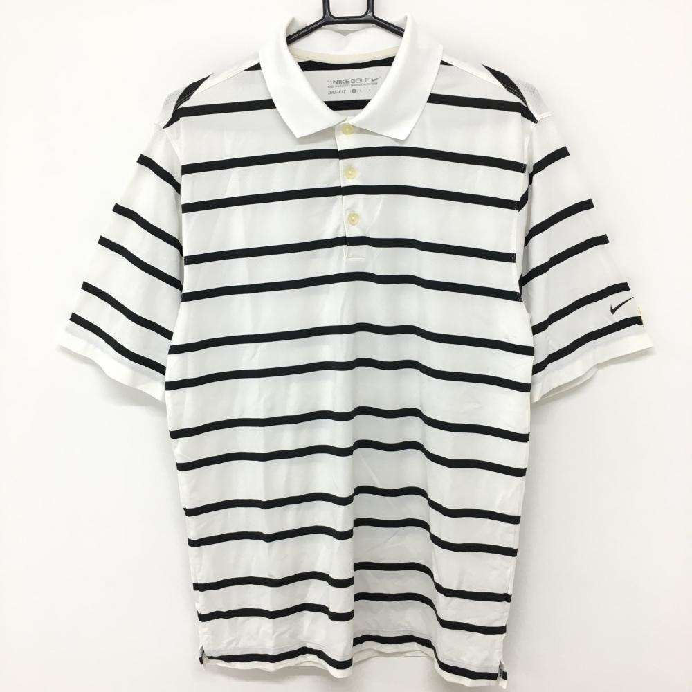 ナイキゴルフ 半袖ポロシャツ 白×黒 ボーダー DRI-FIT 一部メッシュ ストレッチ メンズ S ゴルフウェア NIKE