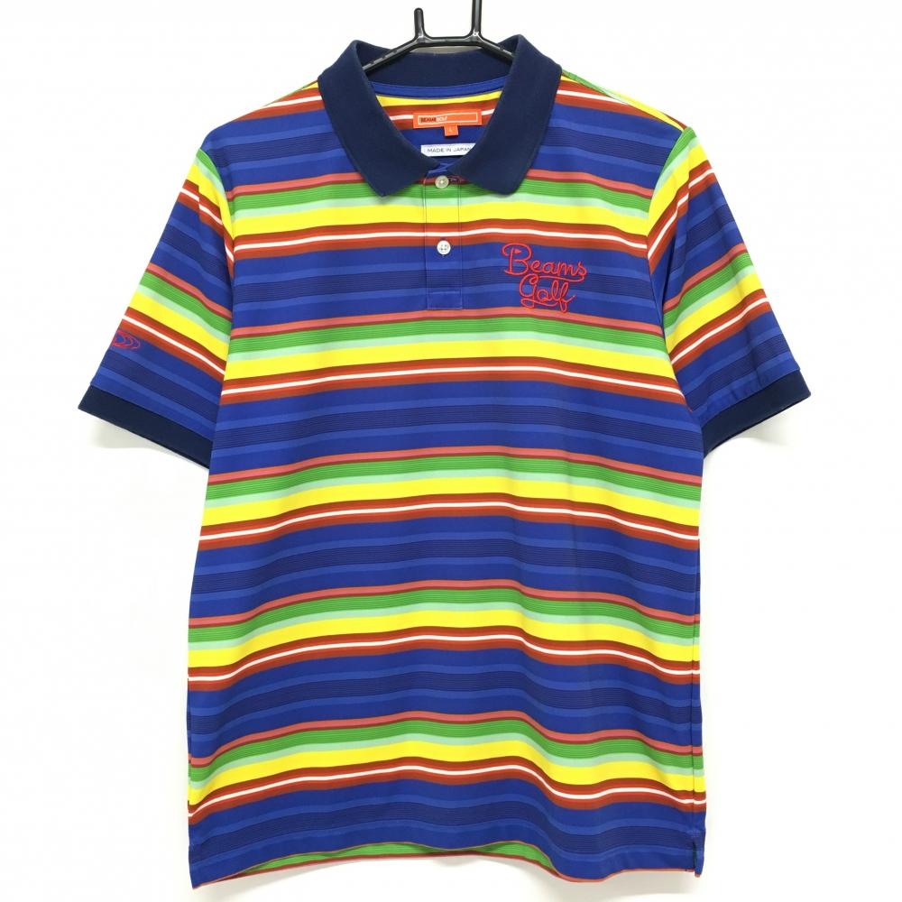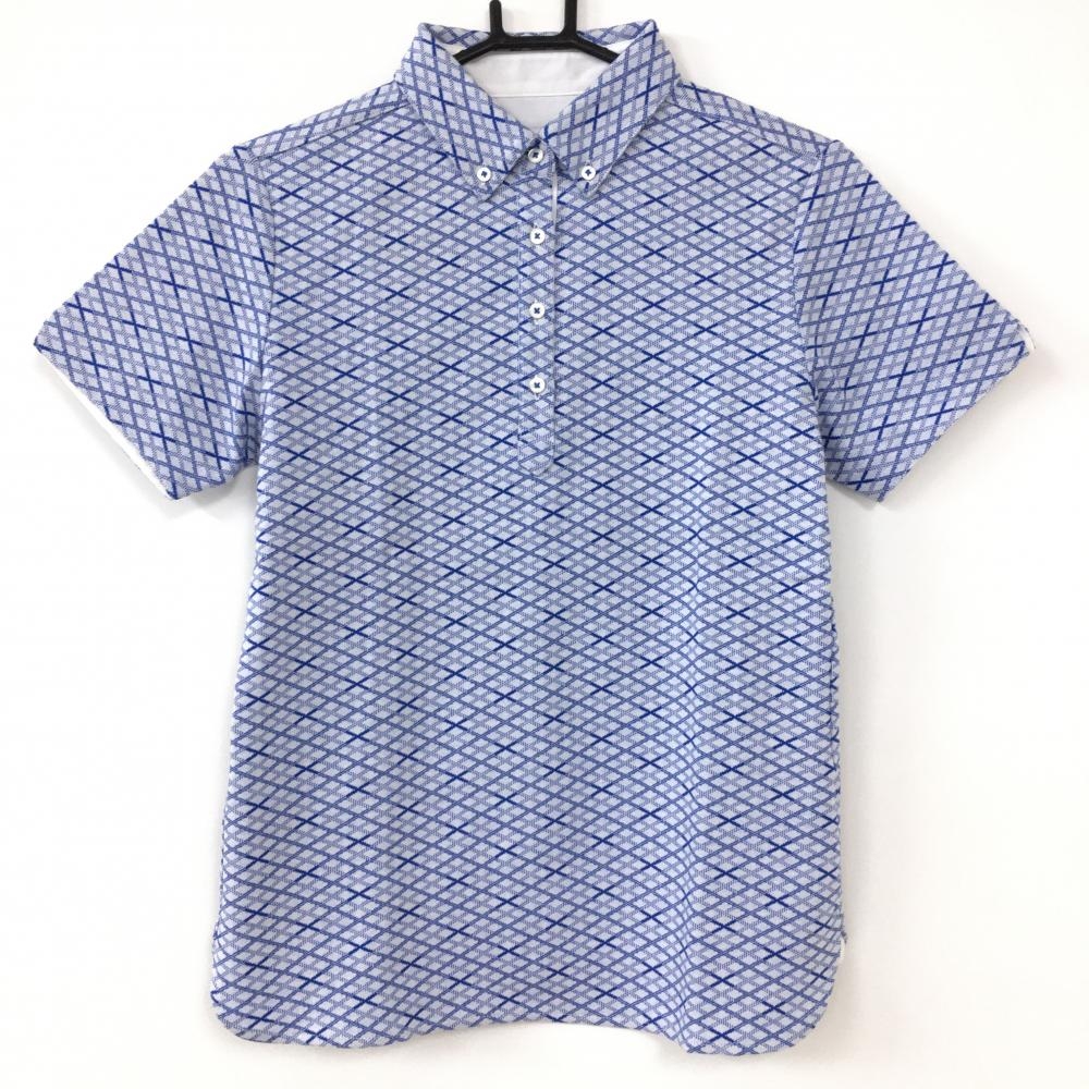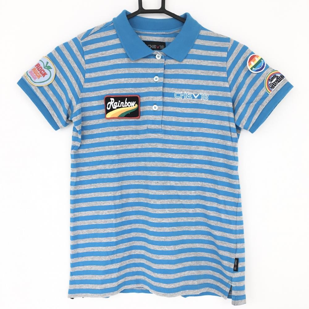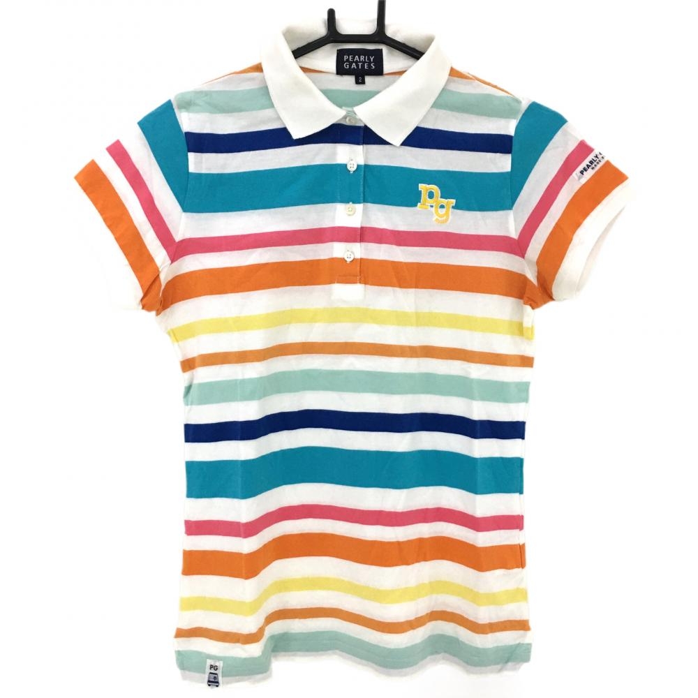 パーリーゲイツ 半袖ポロシャツ ライトブルー×マルチカラー ボーダー レディース 2(L) ゴルフウェア PEARLY GATES