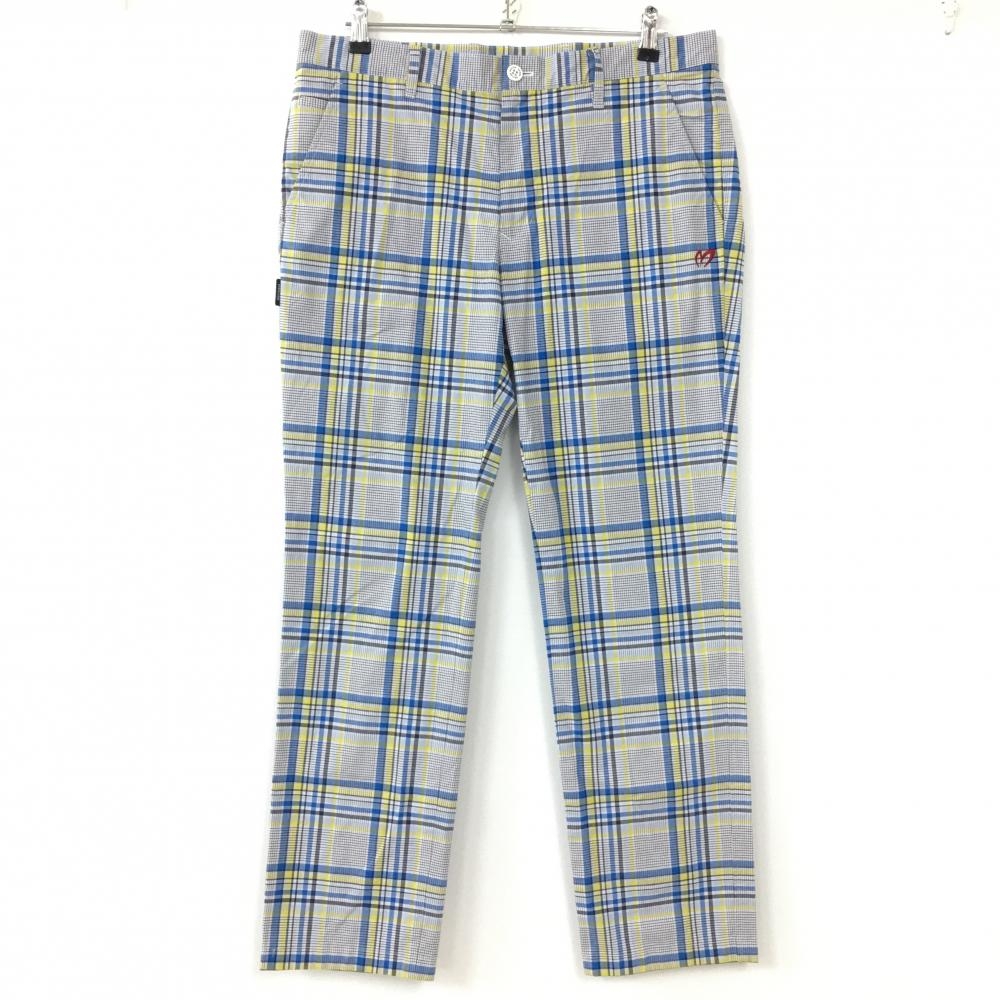 マスターバニー パンツ ダークネイビー×白×イエロー チェック柄 日本製 メンズ 5(L) ゴルフウェア MASTER BUNNY EDITION