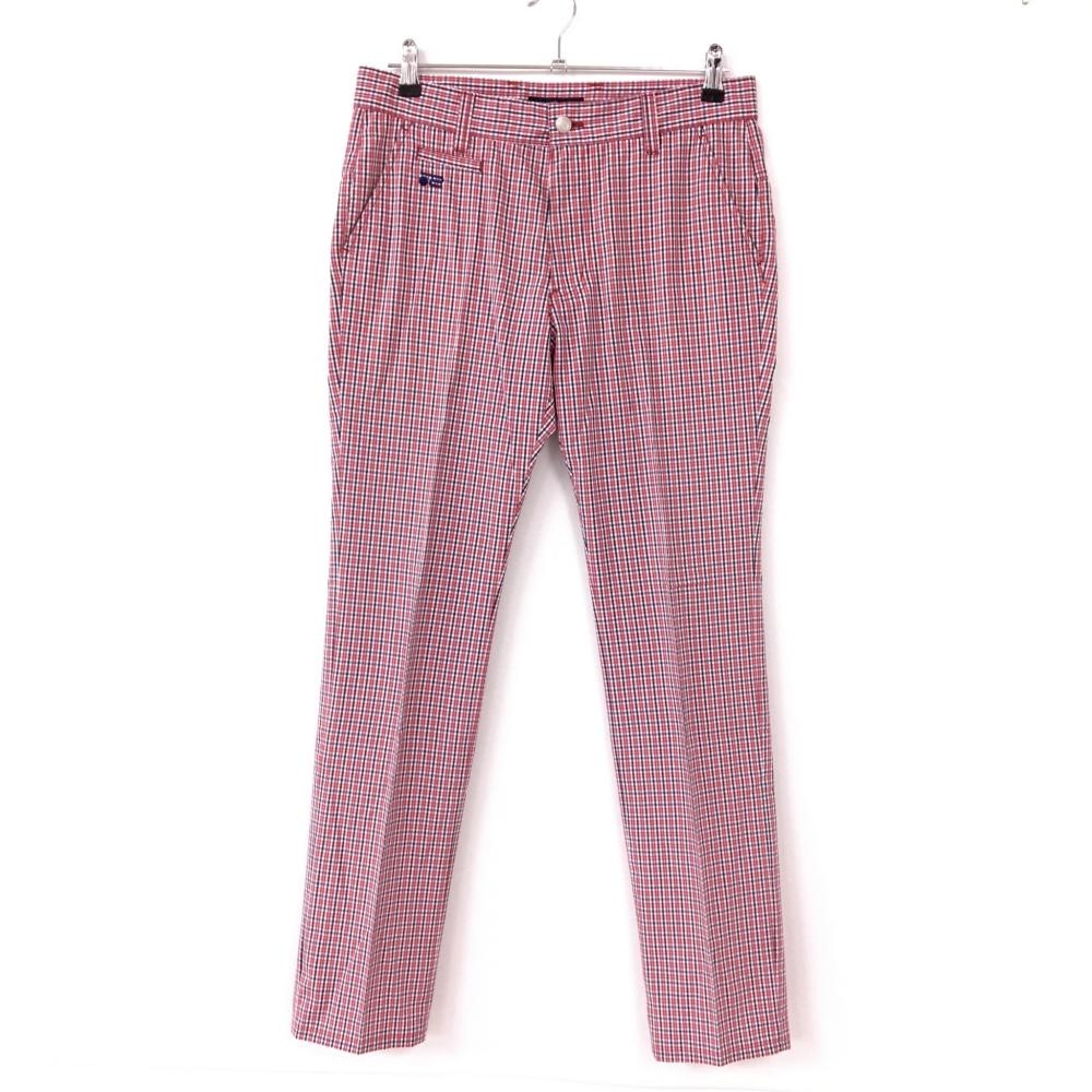 【超美品】Rosasen ロサーセン パンツ レッド×黒 チェック柄 総柄 5ポケット やや薄手 メンズ 82 ゴルフウェア
