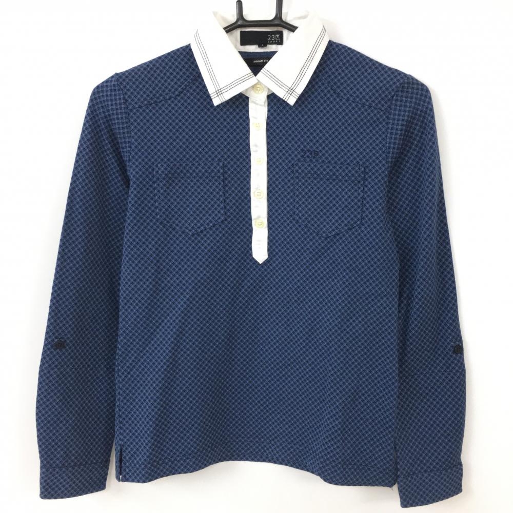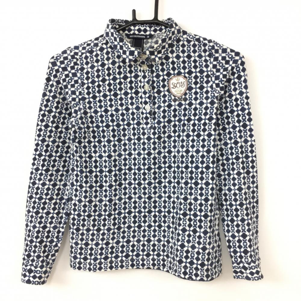 【美品】ゾーイ 長袖ポロシャツ 白×ネイビー 総柄 コットン95% レディース 36 ゴルフウェア ZOY