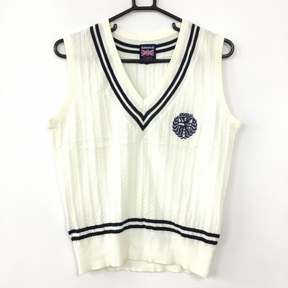 アドミラル ニットベスト 白×ネイビー Vネック ネックライン ケーブル編み レディース L ゴルフウェア Admiral