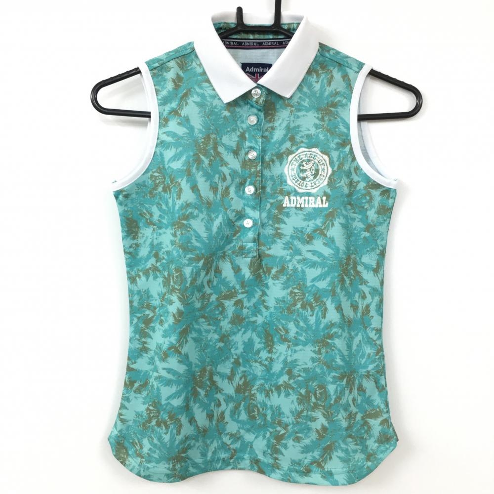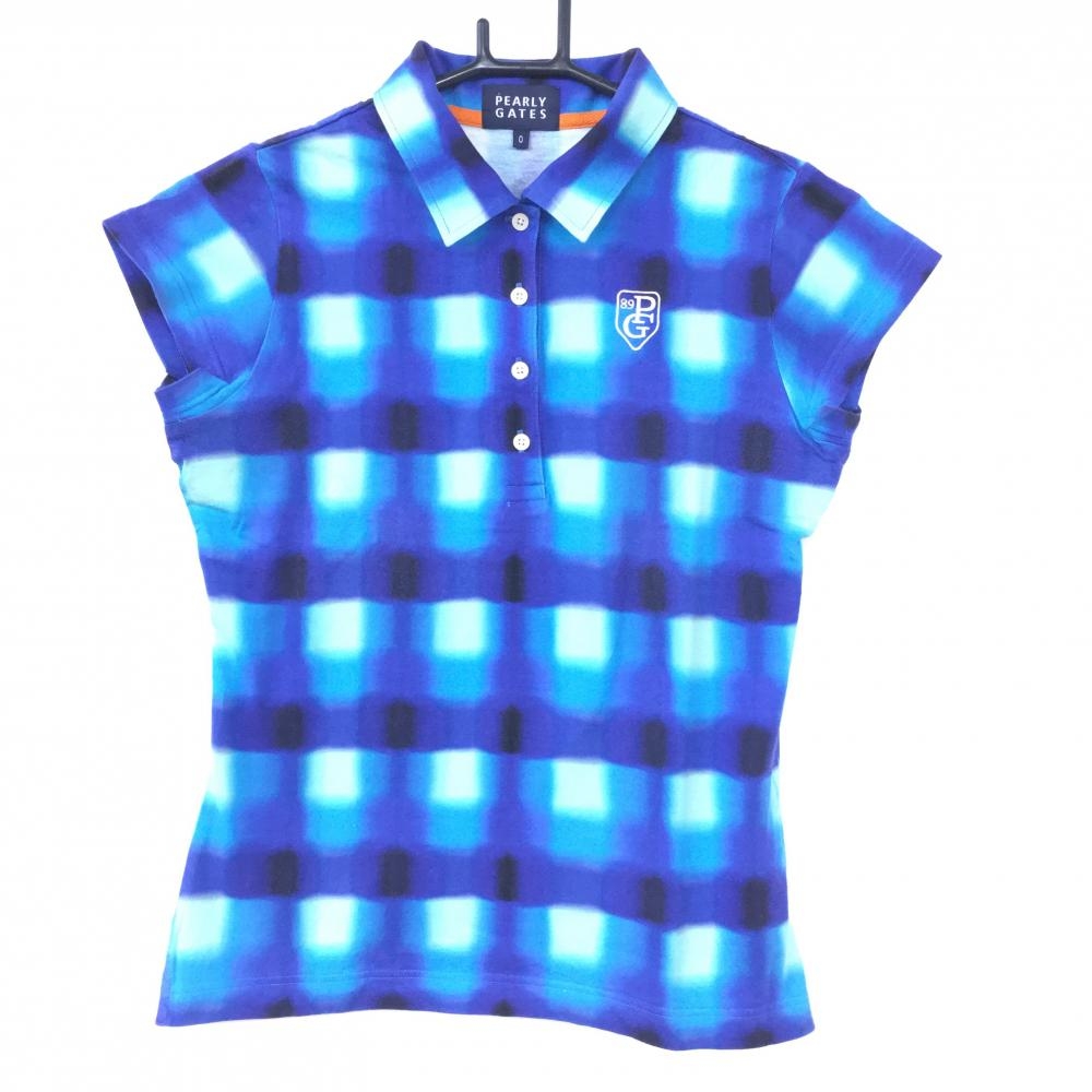 パーリーゲイツ ノースリーブポロシャツ ブルー×ライトグリーン 総柄 コットン100% レディース 0(S) ゴルフウェア PEARLY GATES
