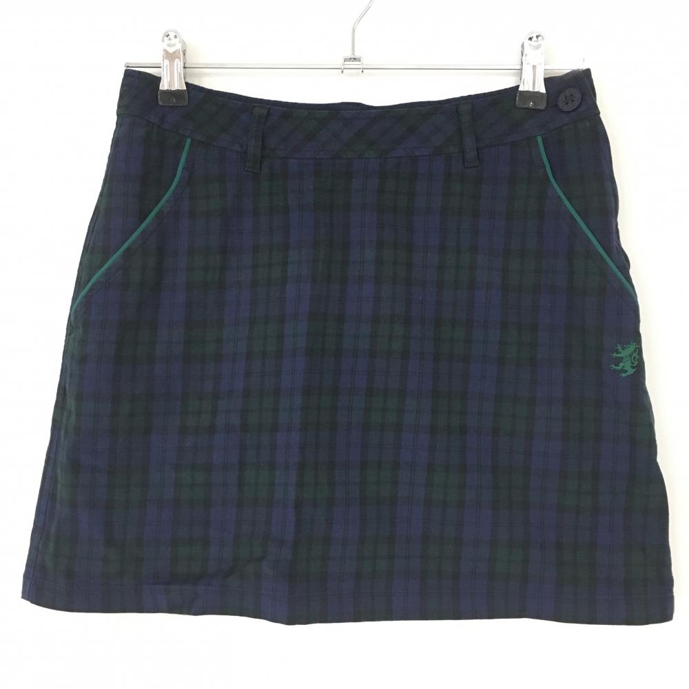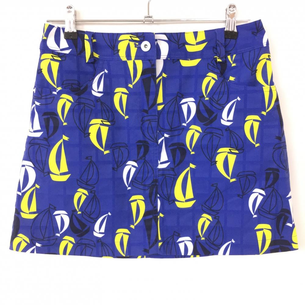 【超美品】キャロウェイ スカート ブルー×イエロー 格子柄織生地×ヨット柄 ストレッチ レディース L ゴルフウェア Callaway