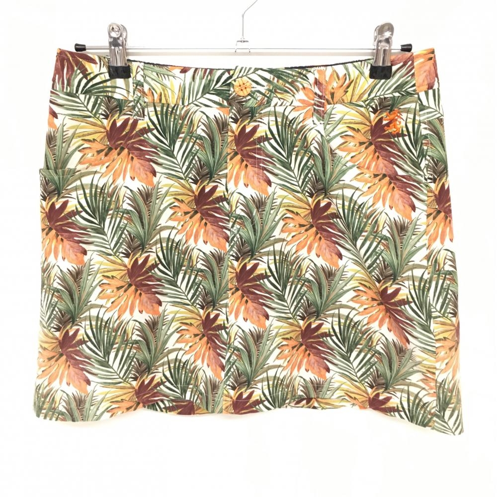 アドミラル ストレッチスカート アイボリー×マルチ リーフ総柄 内蔵インナーパンツ レディース LL ゴルフウェア Admiral