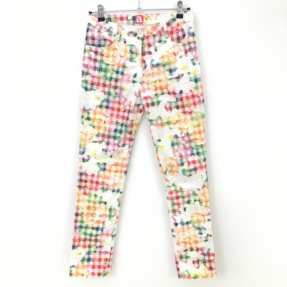 【美品】ゾーイ 半端丈パンツ 白×ライトブラウン 総柄 コットン96% レディース 36(S) ゴルフウェア ZOY