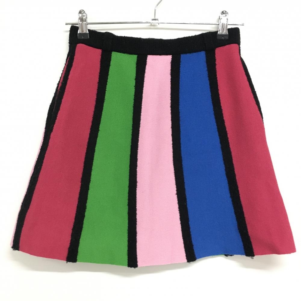 【美品】アルチビオ ニットスカート マルチカラー×黒 ストライプ ウール混 カラフル レディース 36(S) ゴルフウェア archivio