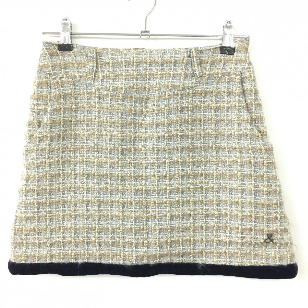 【美品】アンパスィ スカート ベージュ×グレー チェック ツイード 裏地付き レディース S ゴルフウェア and per se