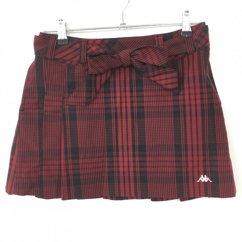 【美品】Kappa カッパ スカート レッド×黒 チェック バックプリーツ 共布リボン付き レディース 7 ゴルフウェア