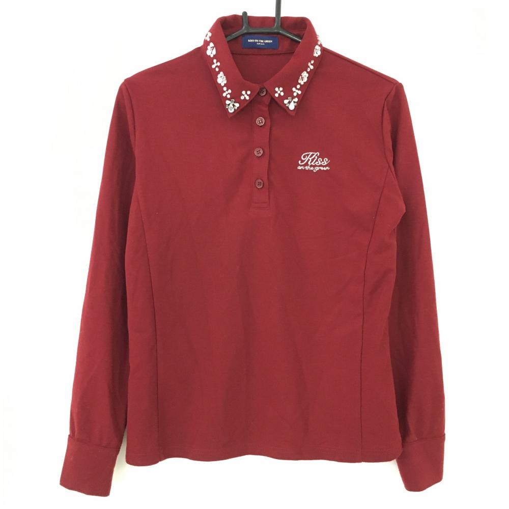 【美品】キスオンザグリーン 長袖ポロシャツ ボルドー ロゴ刺しゅう レディース 3 ゴルフウェア kiss on the green