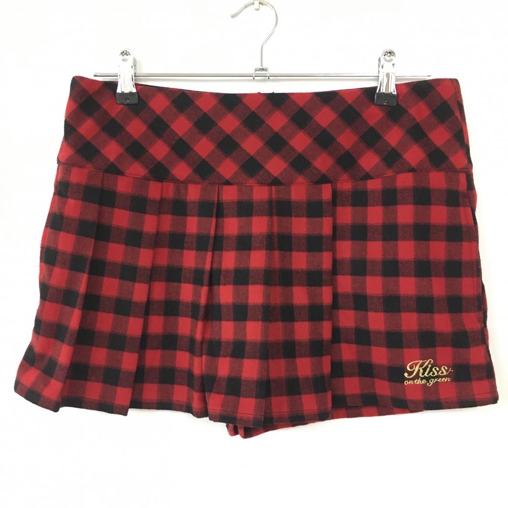 【超美品】キスオンザグリーン キュロットスカート レッド×黒 チェック 起毛素材 レディース 3(L) ゴルフウェア kiss on the green