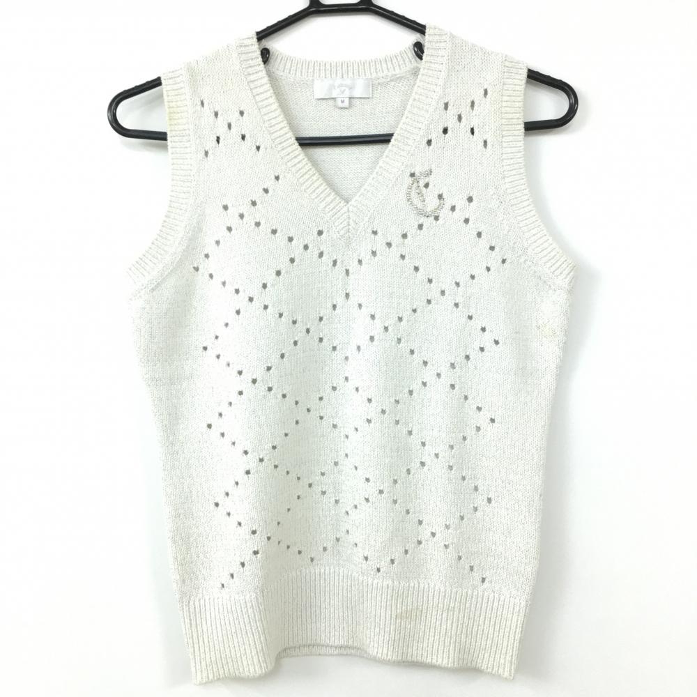 Callaway キャロウェイ ニットベスト 白 ラインストーン 前面ダイヤ柄編み レディース M ゴルフウェア