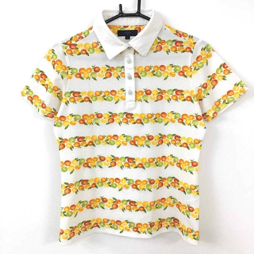 キャロウェイ 半袖ポロシャツ 白×オレンジ オレンジ総柄 レディース L ゴルフウェア Callaway