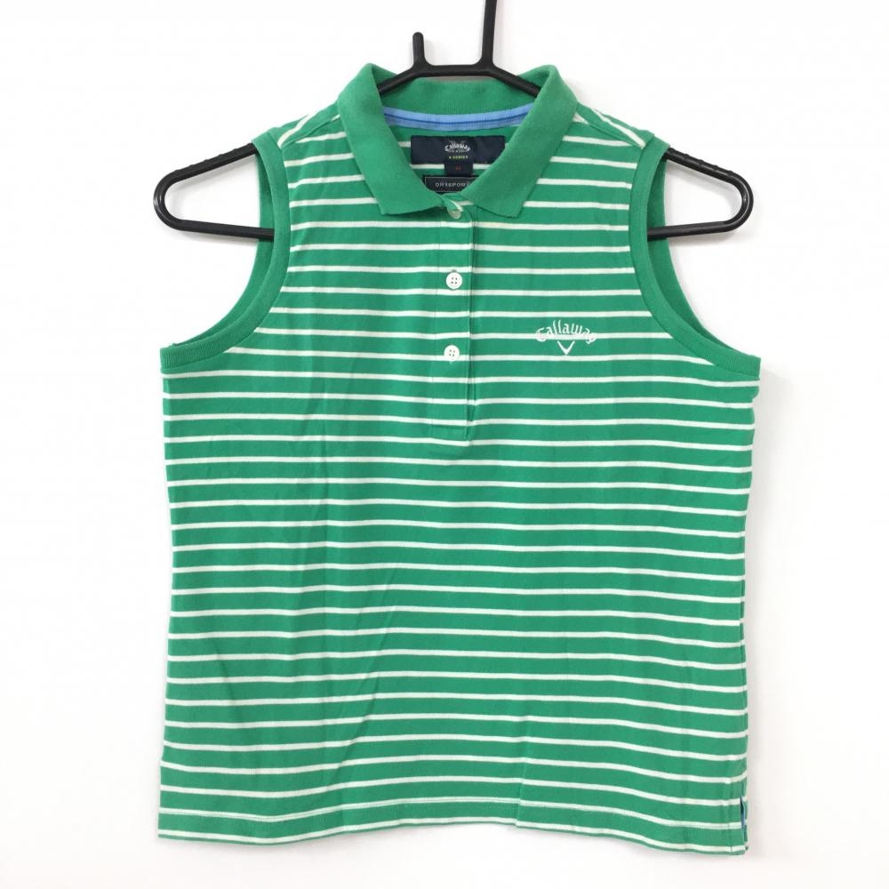 Callaway キャロウェイ ノースリーブポロシャツ グリーン×白 ボーダー DRYSPORT レディース M ゴルフウェア