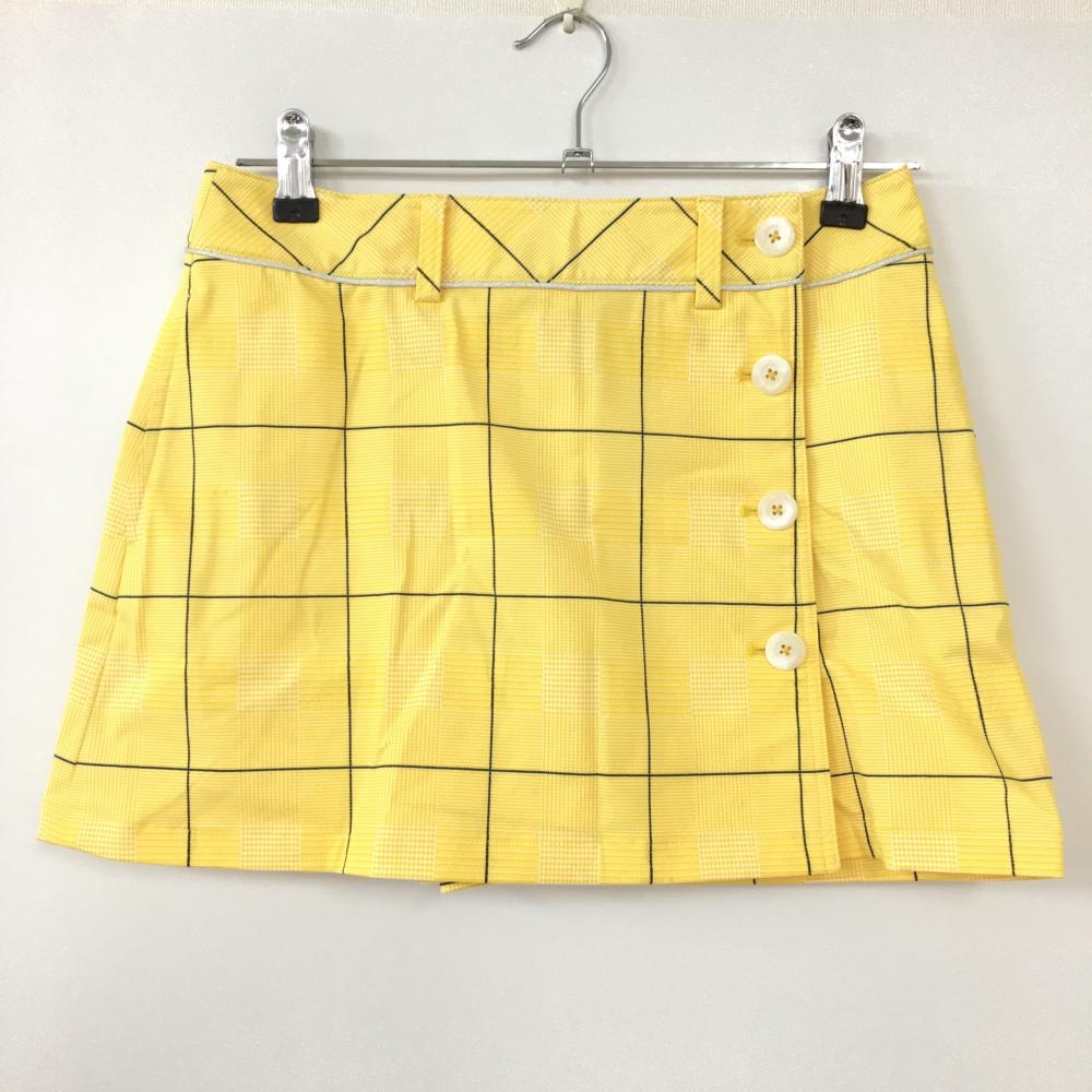 【超美品】キャロウェイ ラップキュロットスカート イエロー×白 チェック柄 レディース S ゴルフウェア Callaway