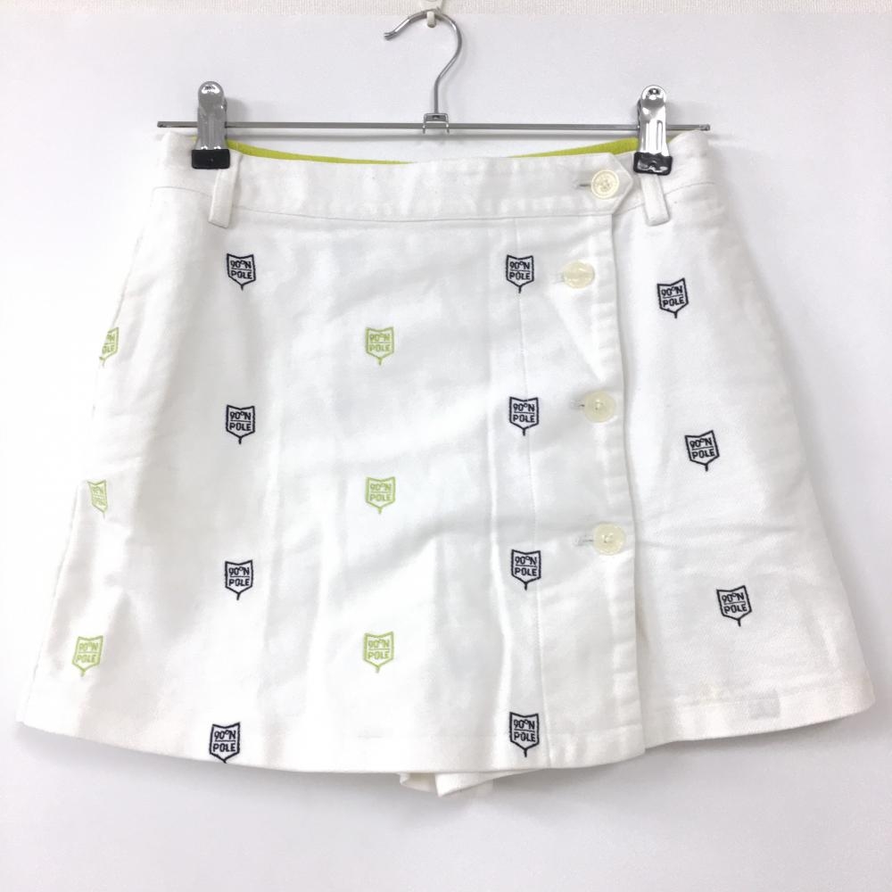キャロウェイ キュロットスカート 白×ネイビー×ライトグリーン 刺しゅう総柄 ウエスト内側フリース レディース S ゴルフウェア Callaway