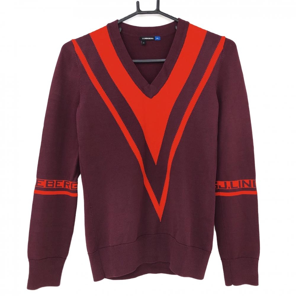 ジェイリンドバーグ セーター ボルドー×レッド Vネック レディース xs ゴルフウェア J.LINDEBERG