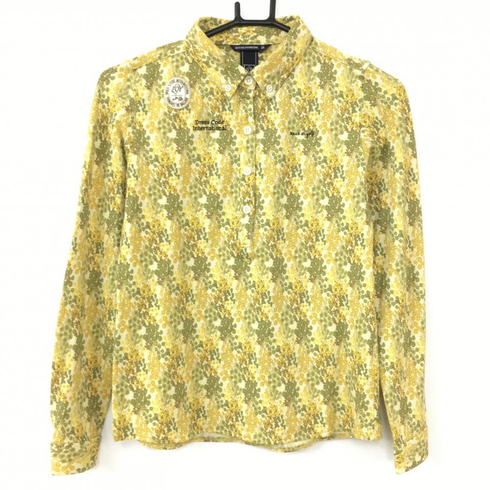 【超美品】ZOY ゾーイ 長袖ポロシャツ イエロー×グリーン 花柄 ラインストーン ボタンダウン レディース 36(S) ゴルフウェア
