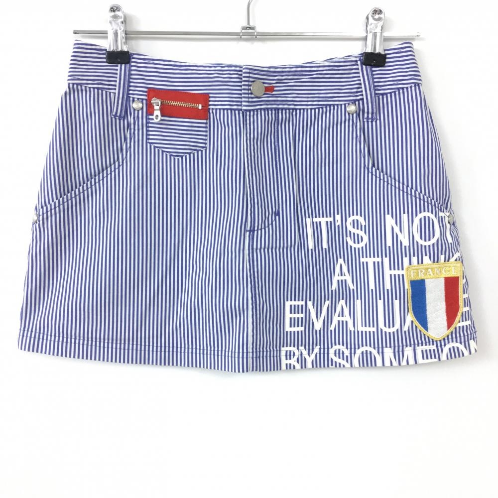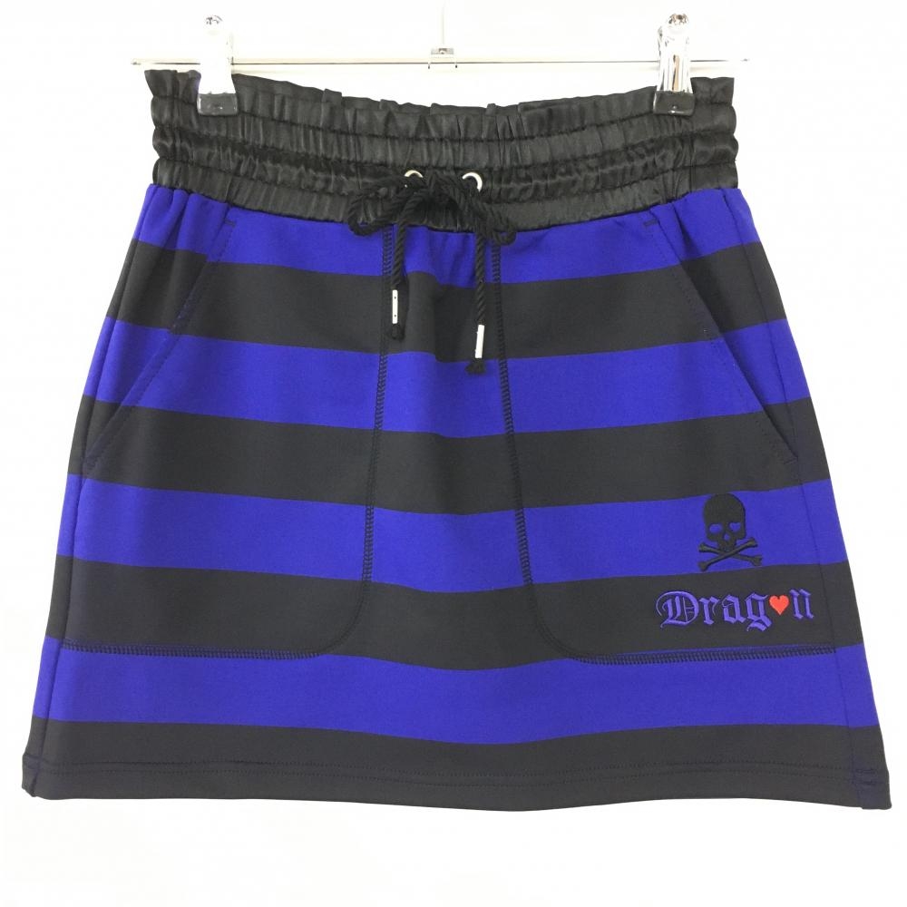 【超美品】ダンスウィズドラゴン ストレッチスカート ブルー系×黒 ボーダー レディース 2(M) ゴルフウェア Dance With Dragon