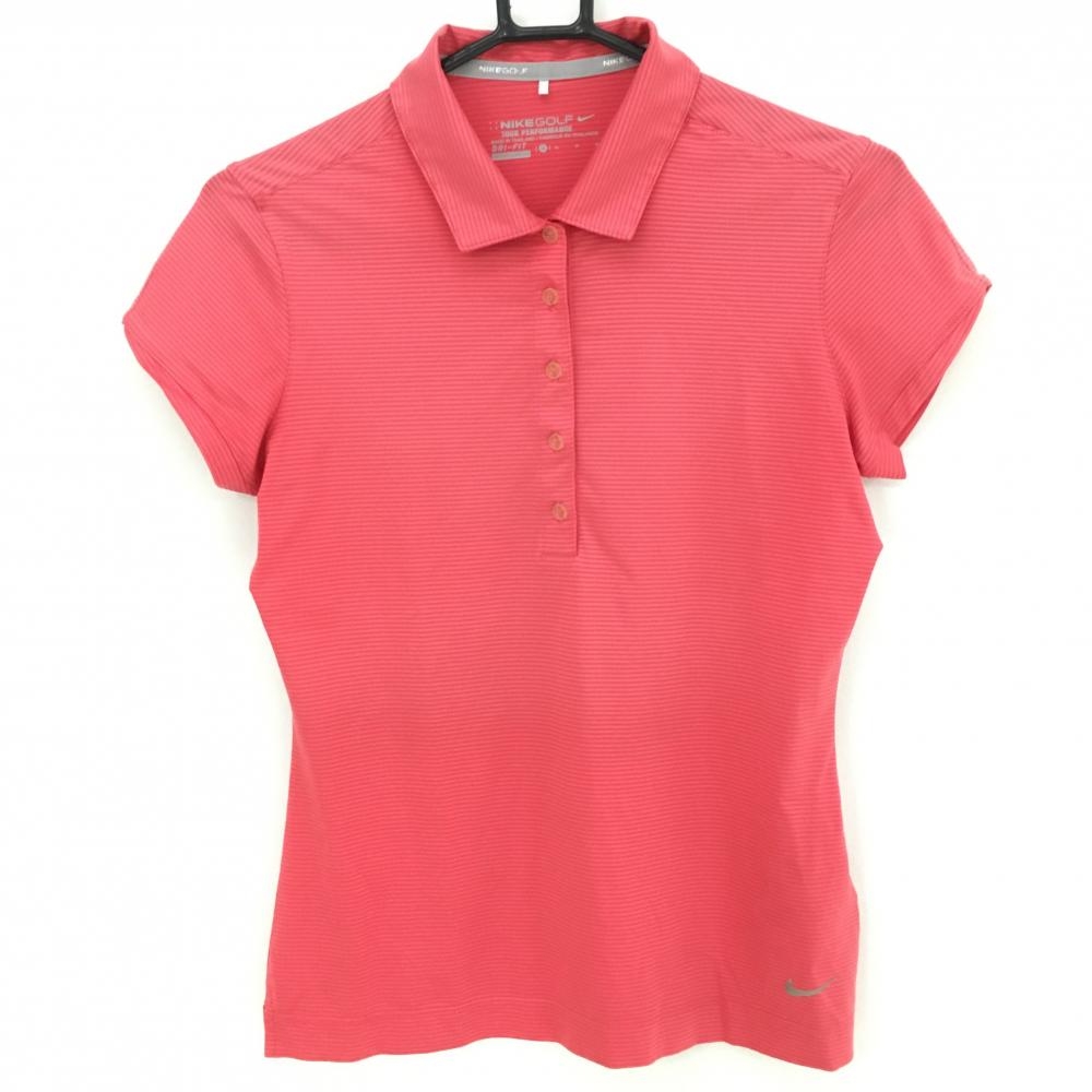 【美品】ナイキゴルフ 半袖ポロシャツ ピンクレッド 細ボーダー柄 DRI-FIT レディース M ゴルフウェア NIKE