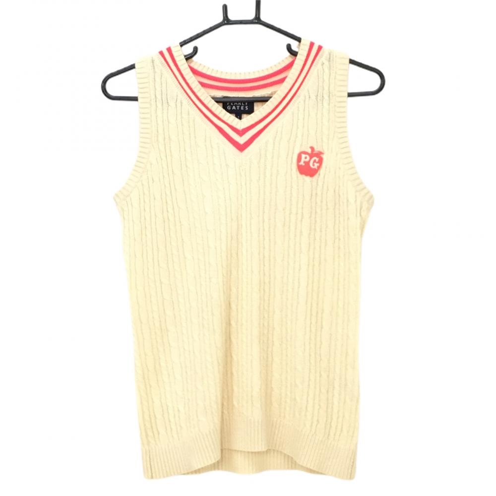 【美品】パーリーゲイツ ニットベスト アイボリー×蛍光ピンク アップル Vネック レディース 1(M) ゴルフウェア PEARLY GATES
