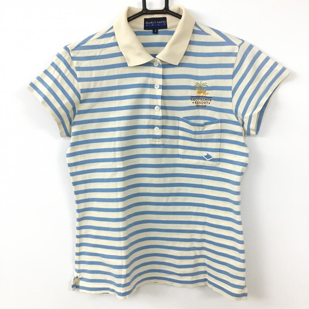 パーリーゲイツ 半袖ポロシャツ ライトベージュ×ライトブルー ボーダー 胸ポケット レディース 2(L) ゴルフウェア PEARLY GATES