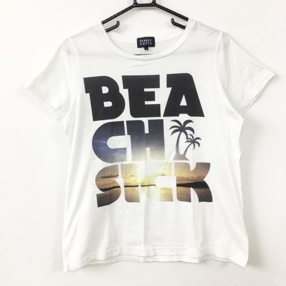 PEARLY GATES パーリーゲイツ 半袖Tシャツ 白×ブラウン ヤシの木 レディース 1(M) ゴルフウェア
