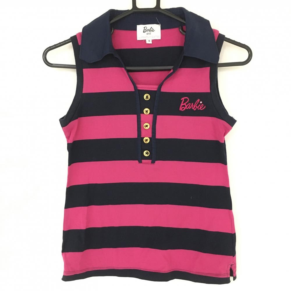 バービーゴルフbyパーリーゲイツ ノースリーブポロシャツ ネイビー×ピンク ボーダー レディース 0(S) ゴルフウェア PEARLY GATES