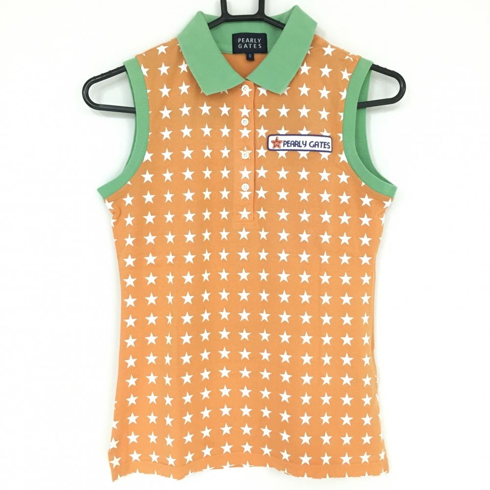 【超美品】パーリーゲイツ ノースリーブポロシャツ オレンジ×白 星柄 コットン100% レディース 0(S) ゴルフウェア PEARLY GATES