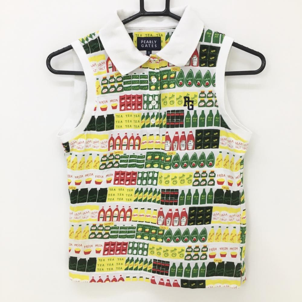 【美品】パーリーゲイツ ノースリーブポロシャツ 白×イエロー 総柄 レディース 0 ゴルフウェア PEARLY GATES